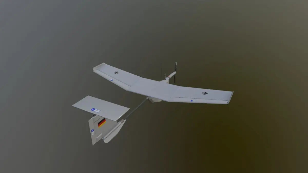 An Aladin UAV of the German ArmyThe UAV can be radio-controlled via a portable control station, or fly according to previously set GPS coordinates. It features a day and night camera and video-relay. It can be transported in two suitcases, which contain the disassembled drone, and a backpack with the control station. The aircraft can be assembled and disassembled without tools in the field within five minutes.