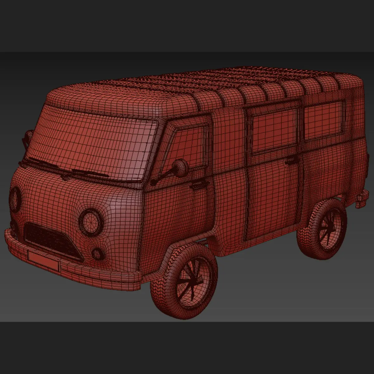 Name: uaz 1965Type: modelFormat: 3Ds Max 2015Export: FBX, OBJ, MATRender: VRay (6.x)Polys: 201610Verts: 205310Units: CentimetersDimension: 82.62 x 43.05 x 40.01Date: 2025.5.16