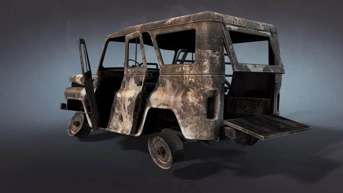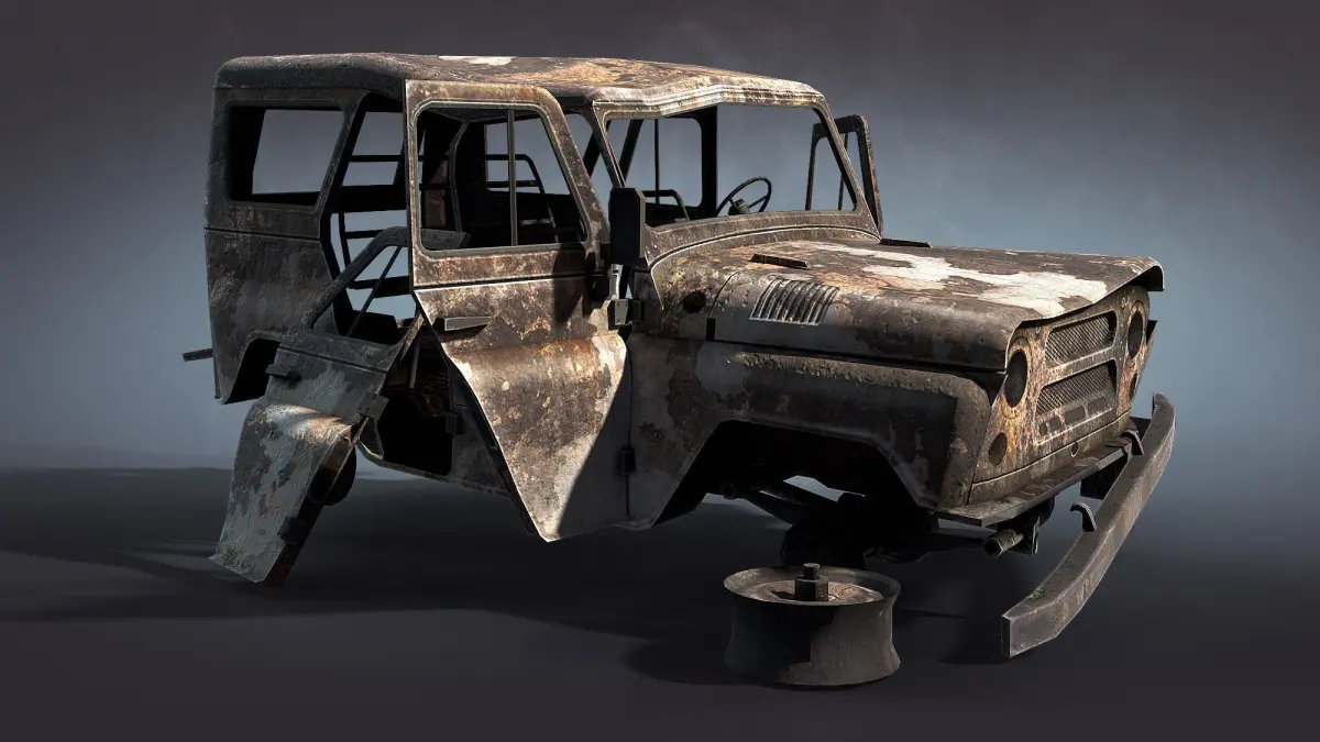 Game low-poly 3d-model of wrecked Soviet SUV UAZ-3151.