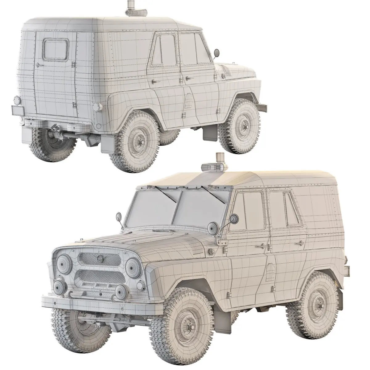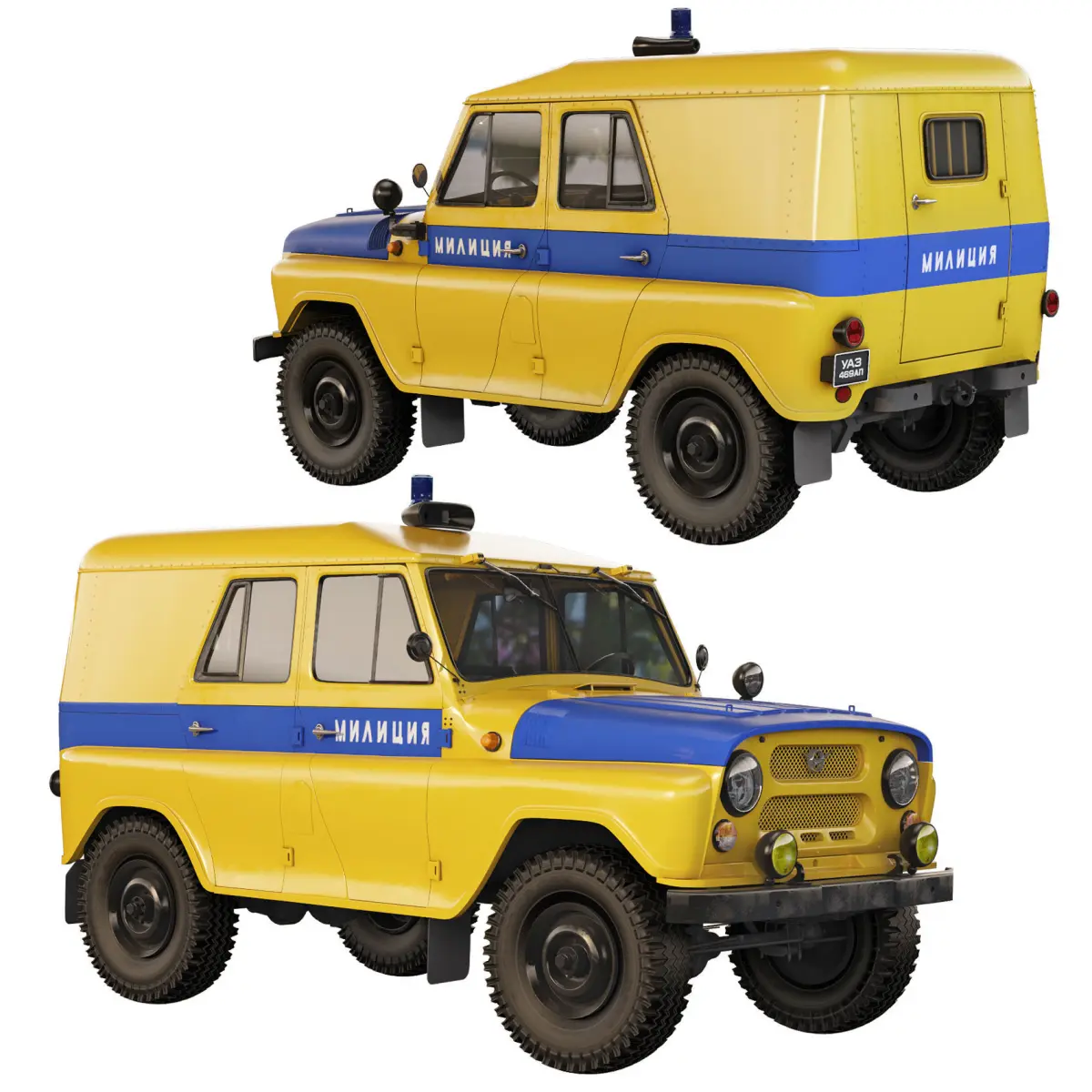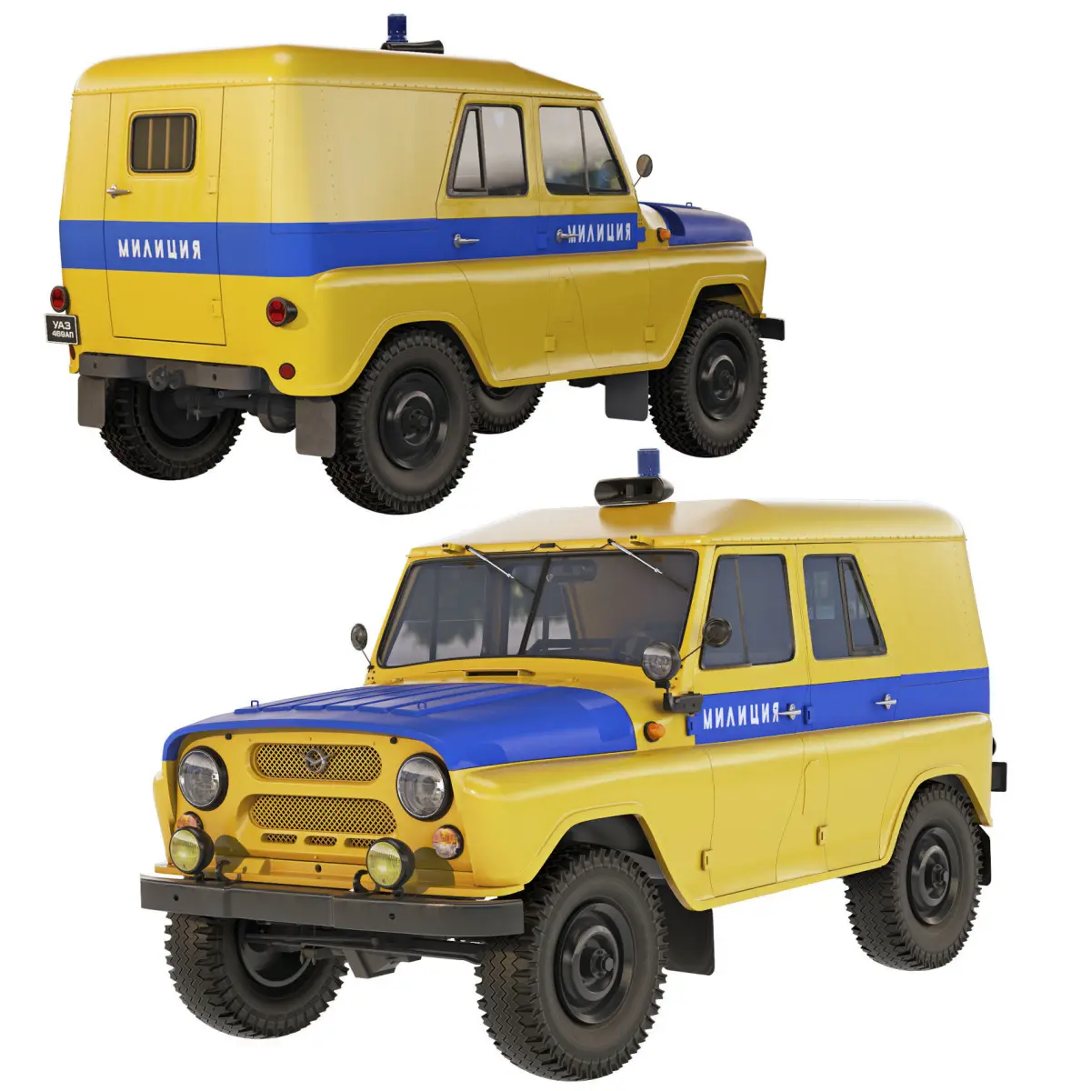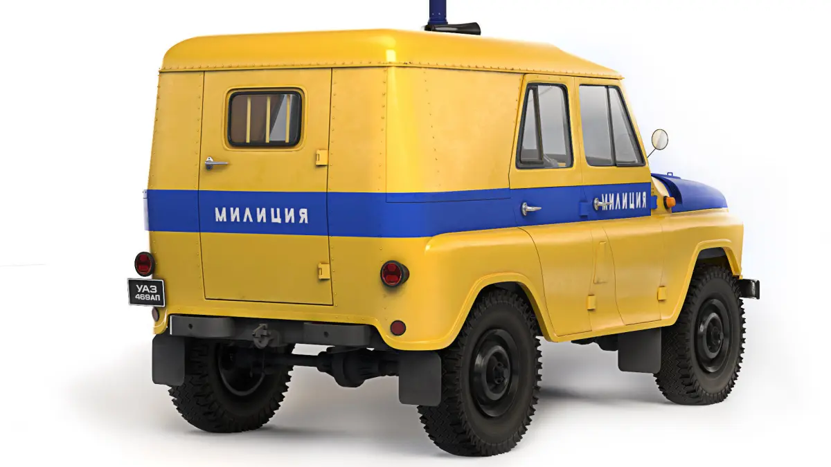 UAZ-469AP - patrol police version, on which an all-metal roof was installed, between the rear row of seats and the aft side seats there was an iron grill, the back door was locked from the outside, the window in it was barred.