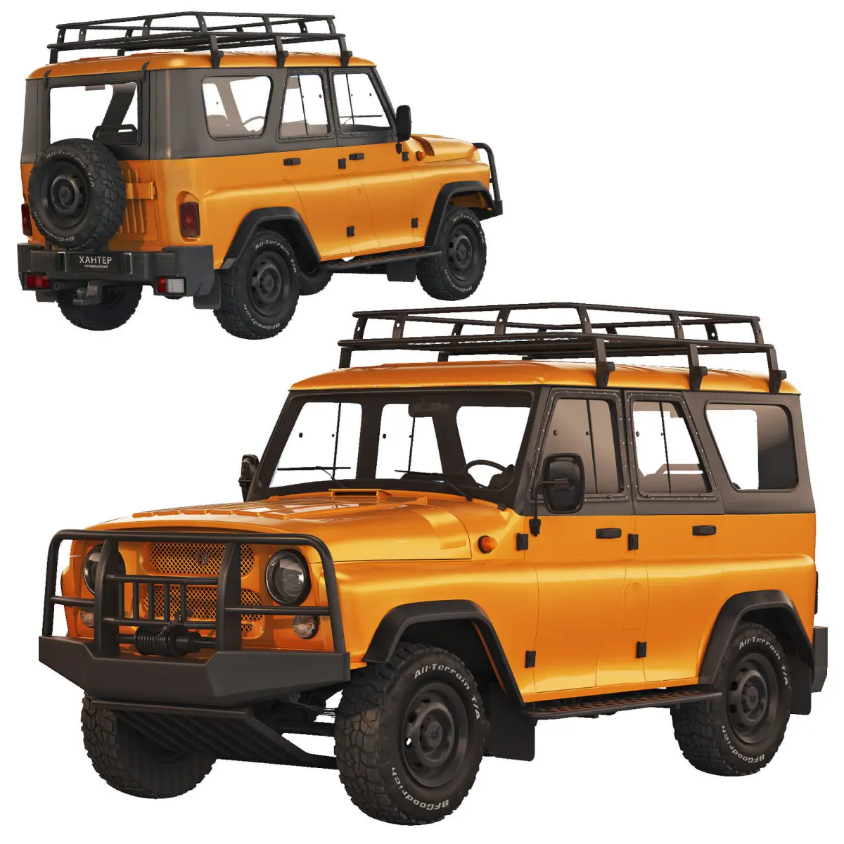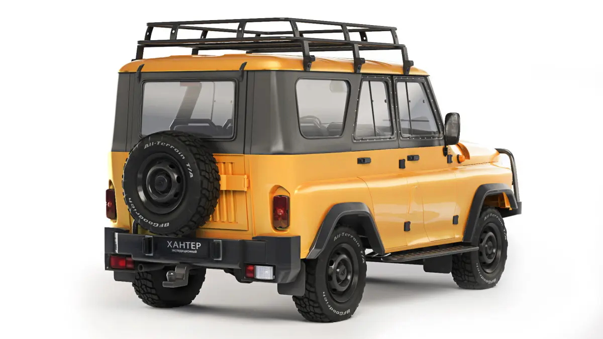 A special version of the Expedition was created on the basis of Hunter Classic. Among the advantages of the Expedition Hunter: an electric winch, an expedition roof rack, power sills, a towbar, fender linings, front and rear power bumpers, towing eyes, steering rod protection, BFGoodrich All-Terrain tires.