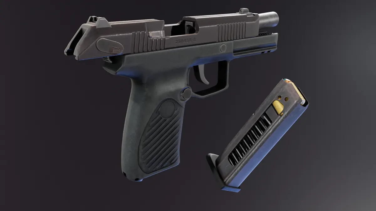 Russian replacement for old Makarov PM chambered in spicy 9x21mm Gyurza. Even if it use polymer frame handgun is HUGE for a pistol, 205mm of lenght and without mag it weight almost 800g. With carbonfiber suppressor its size of medium SMG... Some say that they make it huge to use as a hammer when soldiers run out of ammo...