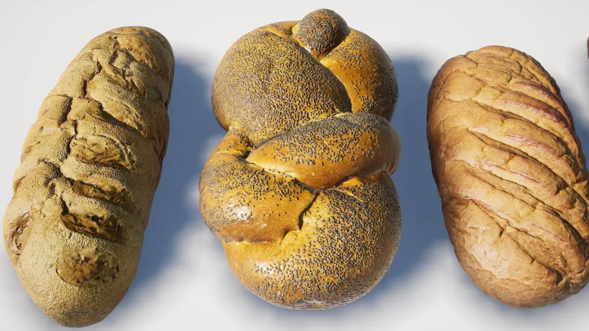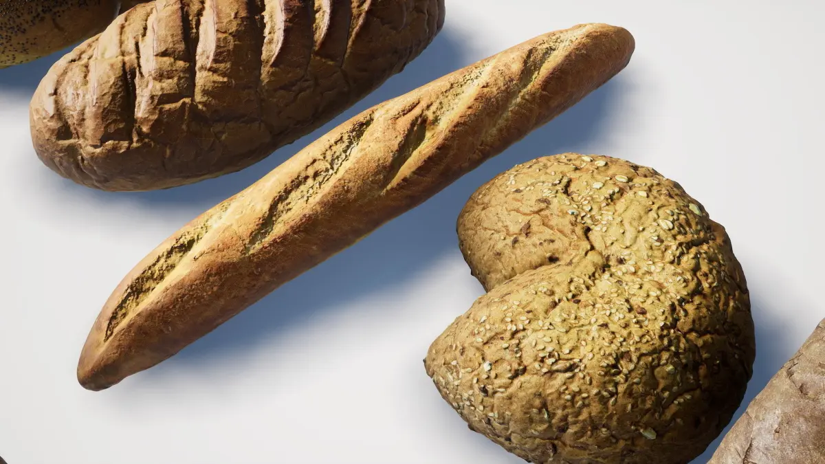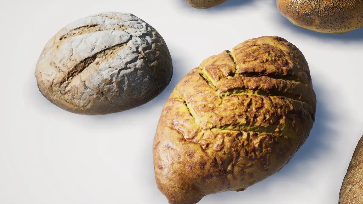 Asset pack with 14 highly detailed realistic scanned loaves of bread.