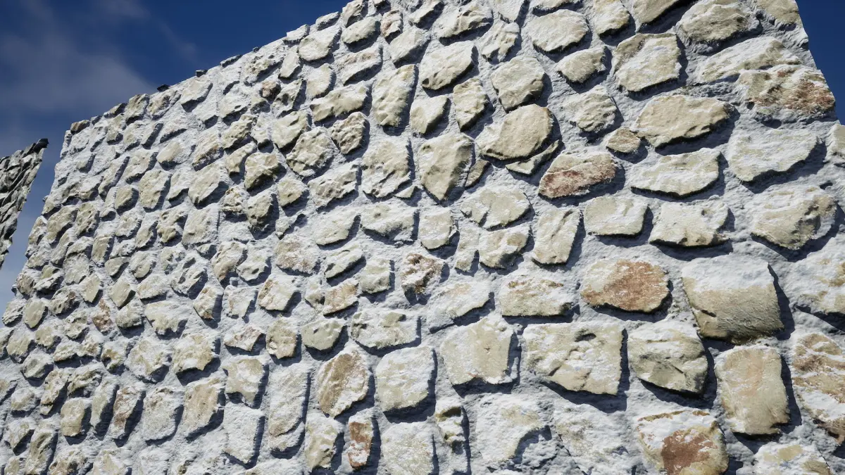 Materials have a displacement map based on real world data (photogrammetry method), which gives the surfaces a realistic volume and texture. Stone masonry of various shapes, colors and sizes.
