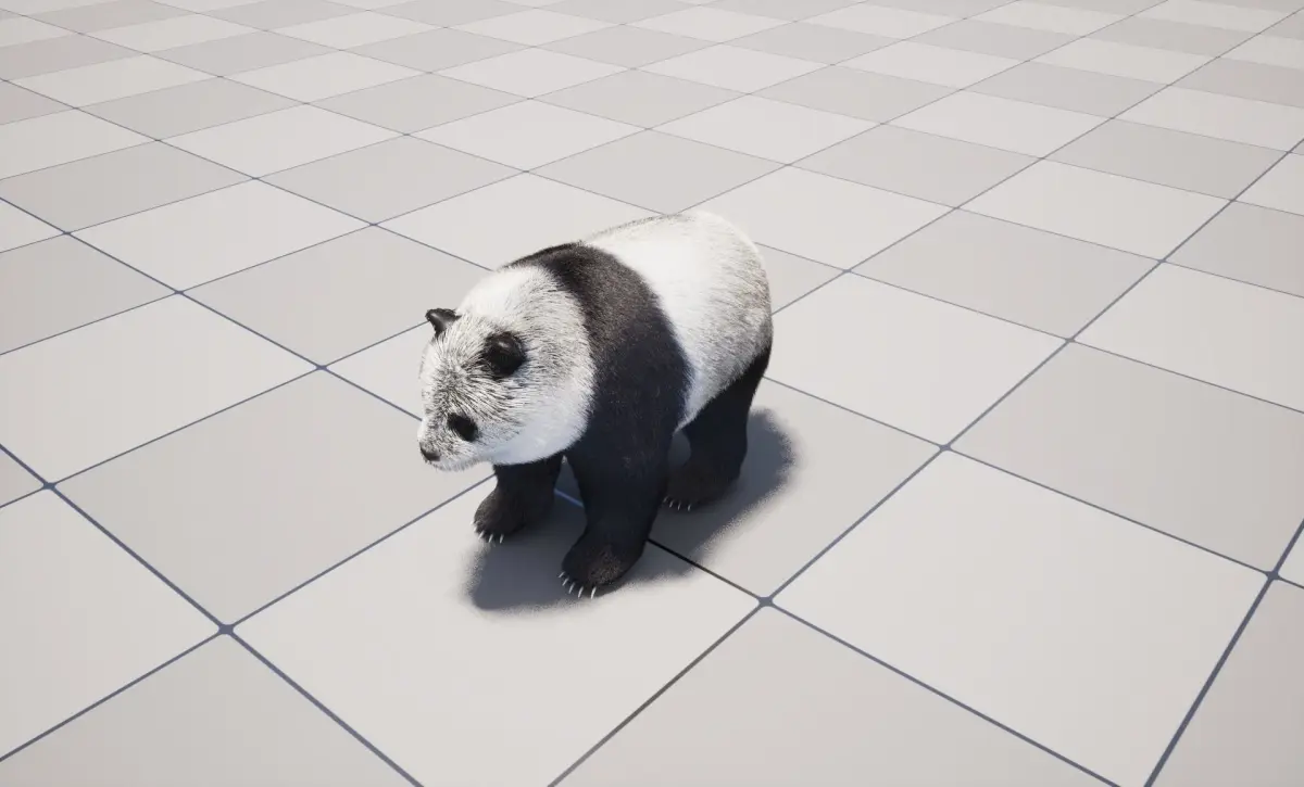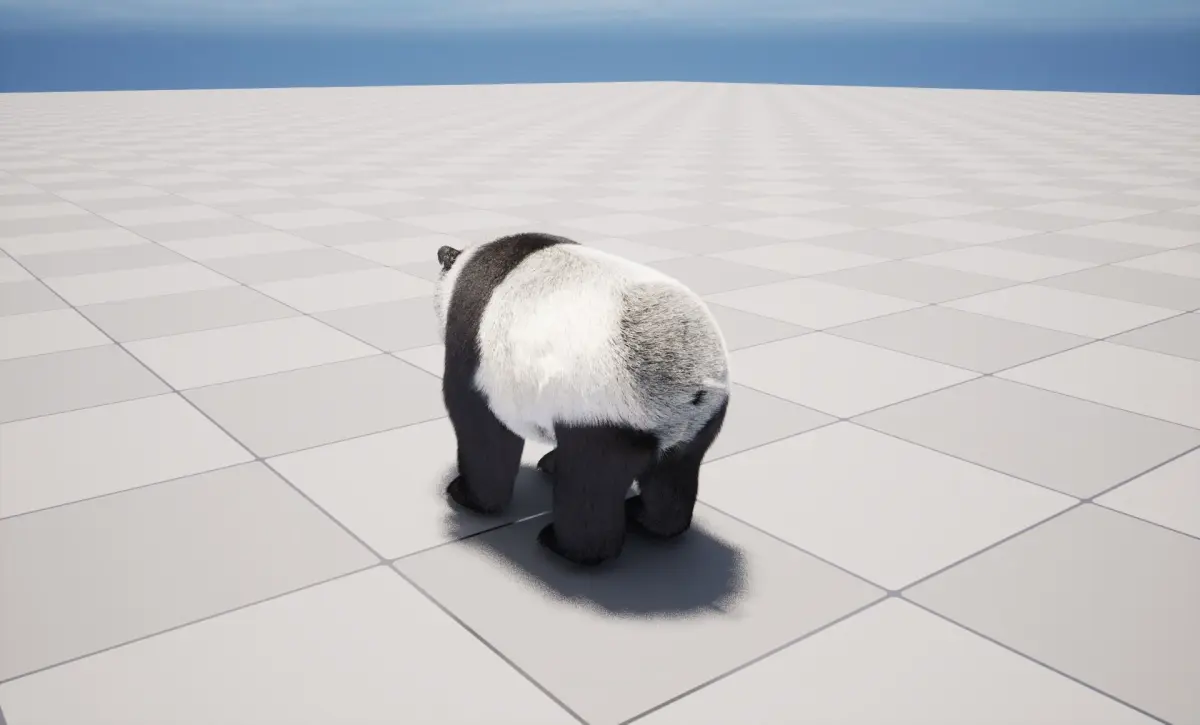 Imported fur .abcs(body fur, face fur, small beard) file to Unreal Engine 5.4.3 with RootUV, Radius, Color, Roughness, set fur groom binding to the Panda skeleton, so can be transforming, simulating along the skeleton mesh.