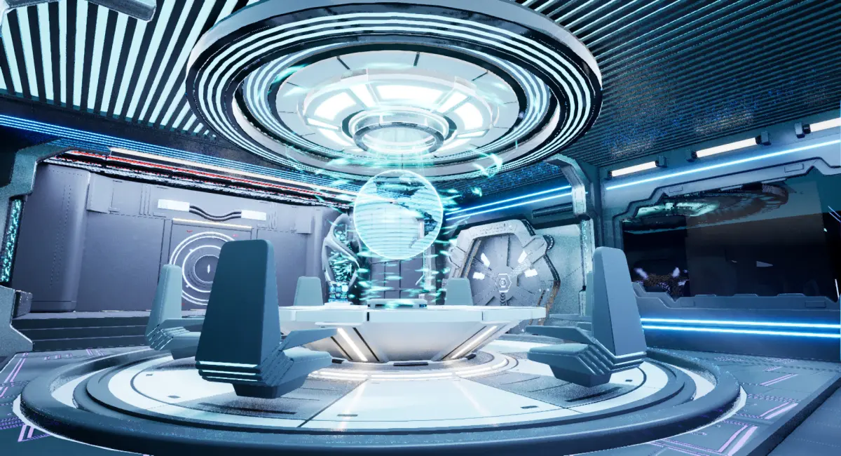 Unreal Engine 5.1 Modular Sci-Fi Space with interior designed for modular, procedural, dynamical.