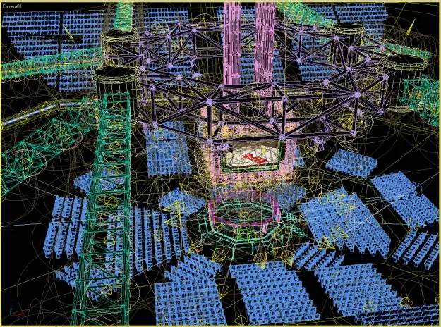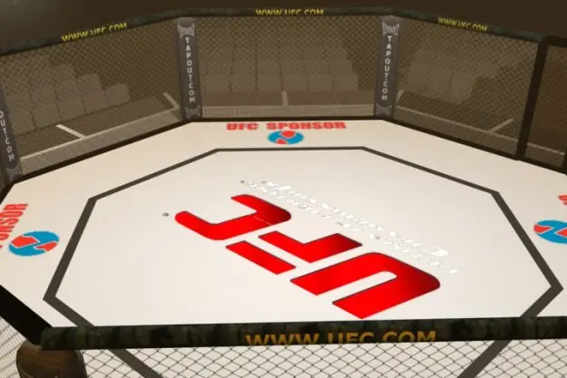 This is a model of the UFC Octagon with stadium seating surrounding it and a large 4 screen display above the fighting area. Sponsors and advertisements can be easily be replaced with your own bitmaps.