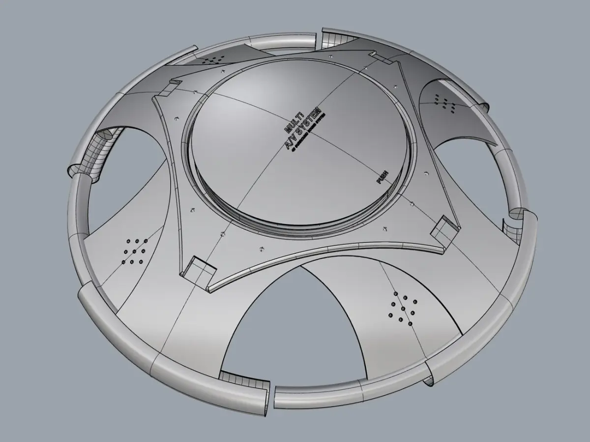 UFO concept mood lighting media player 3D modeling source.3D source that can be 3D printed and used for actual use or decoration but None Scale.3D source that can be used for game characters or for props in the game.After 3D printing, it can be used as a miniature decoration.A relatively simple 3D source as a simple 3D modeling source.