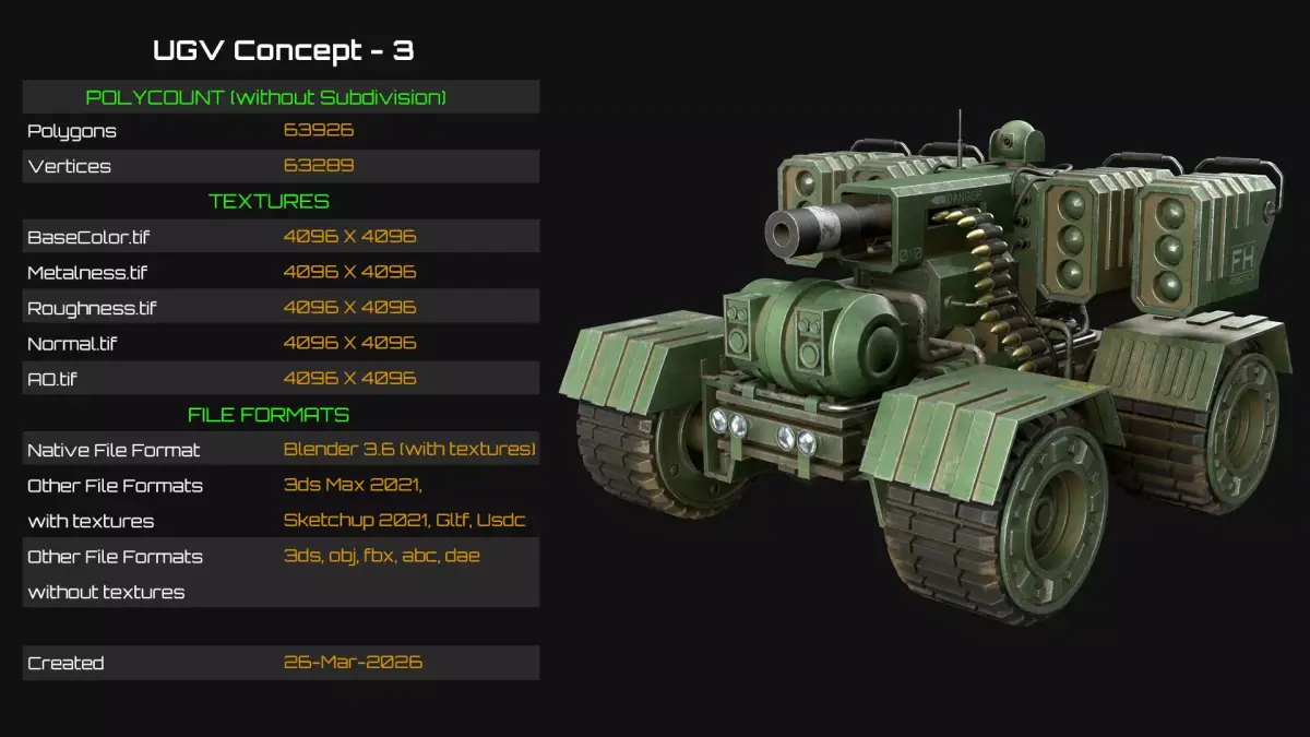 - Realistic 3D model of a UGV Concept-3-Green-Dirty