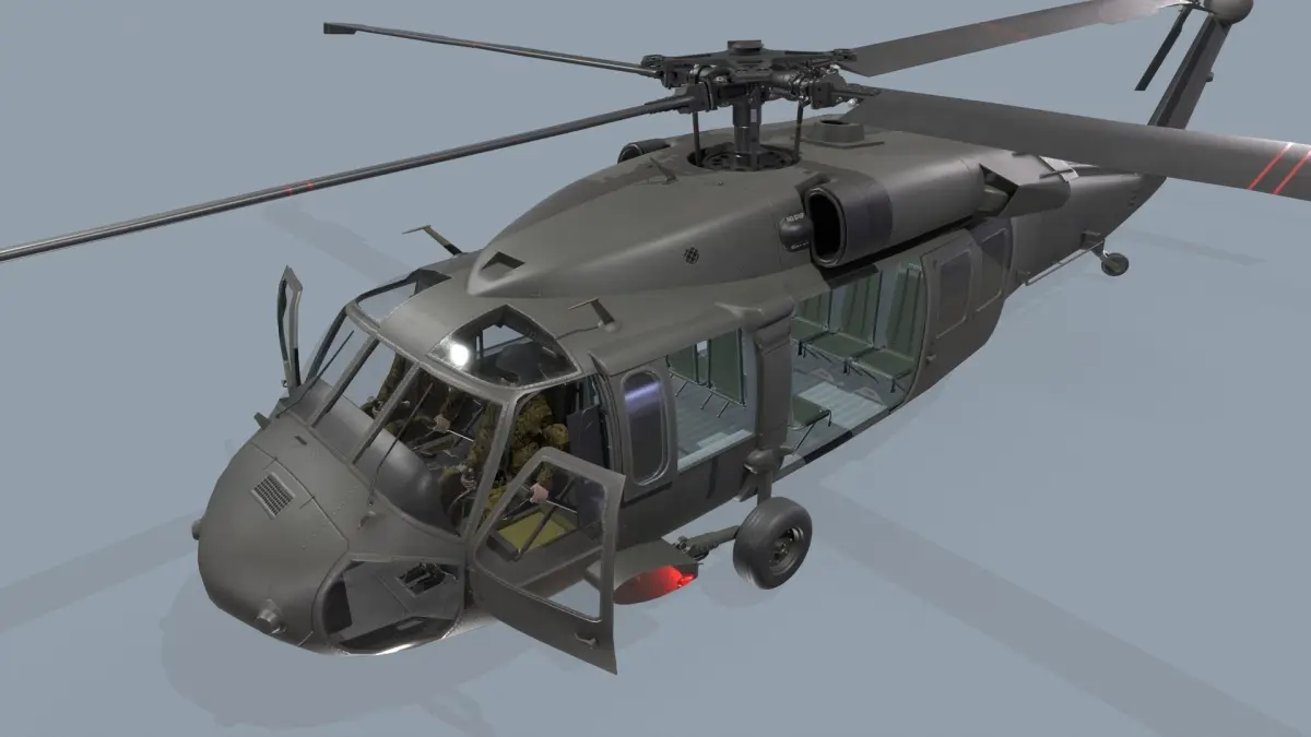 Realistic animated 3d model of Sikorsky UH-60 Black Hawk Dark Complex Animation