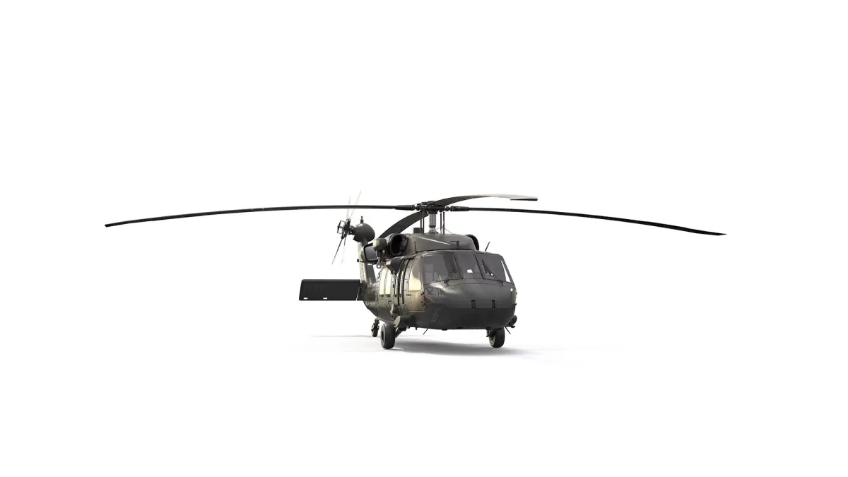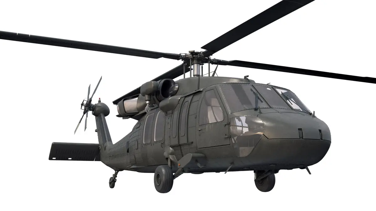 A highly detailed model of an UH-60M Black Hawk helicopter with cockpit included.