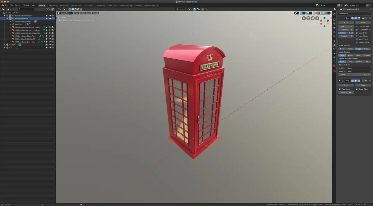 Uses non destructive bevel and edge split modifiers.