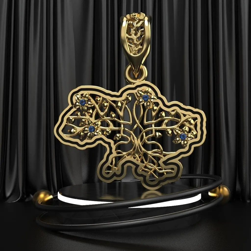 This is a 3D model of the Pendant Ukraine made in rhinoceros Zbrush and Matrix programs. height of pendant with ear - 26 mm., width - 23 mm., thickness 1 mm. , the pendant model is ready for printing, the object is complete, weight: gold 2.76 g. silver 2.16 gr. Gem Reporter : 1,0 -4 (Round)