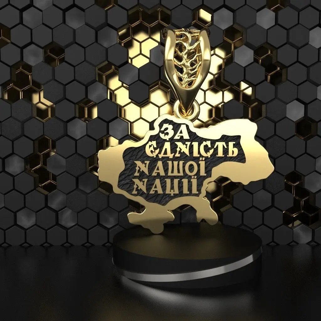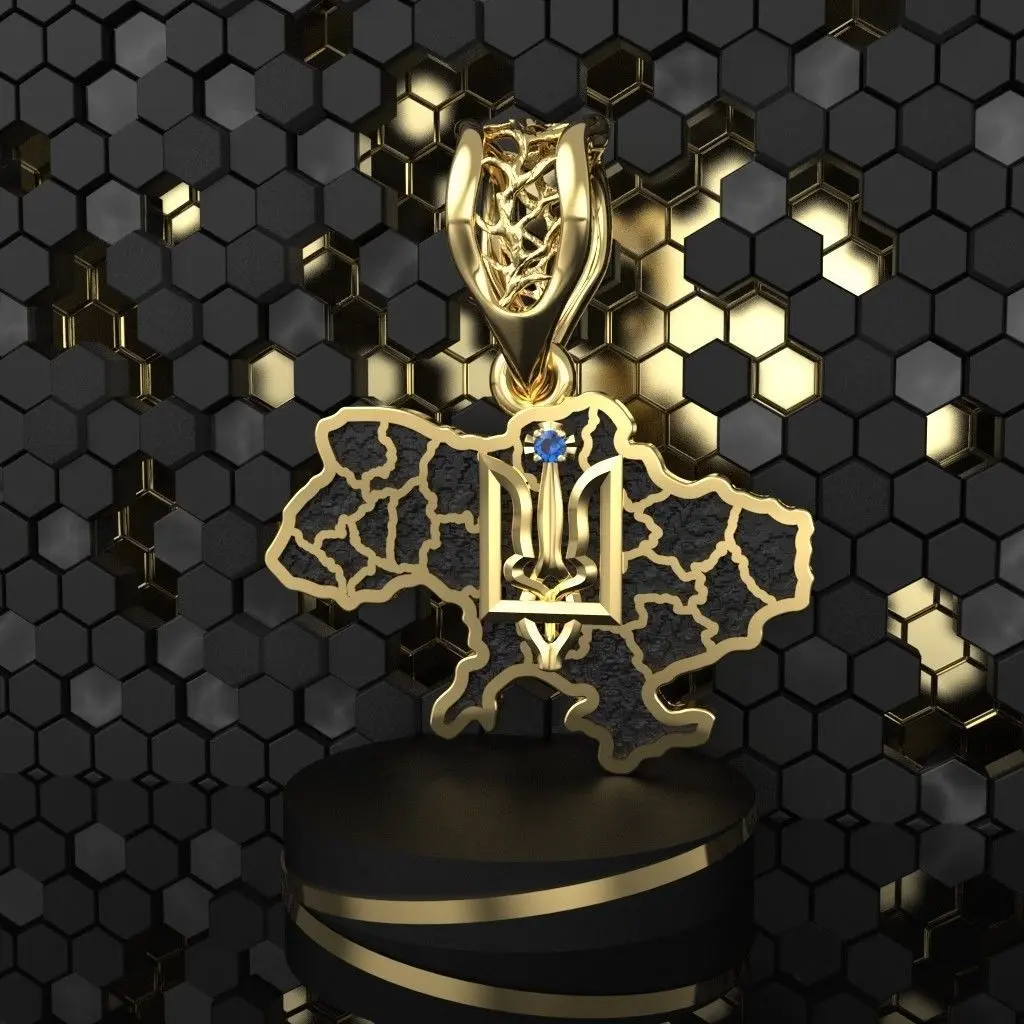 This is a 3D model of the Ukraine Pendant from a rhinoceros Zbrush and Matrix. The size of the pendant is shown in the photo, the model of the pendant is ready for printing, the object is integral, weight: in gold 2.96 gr. silver 2.35 gr.