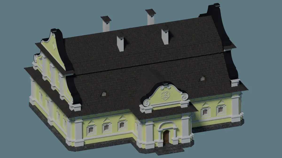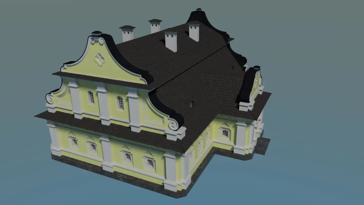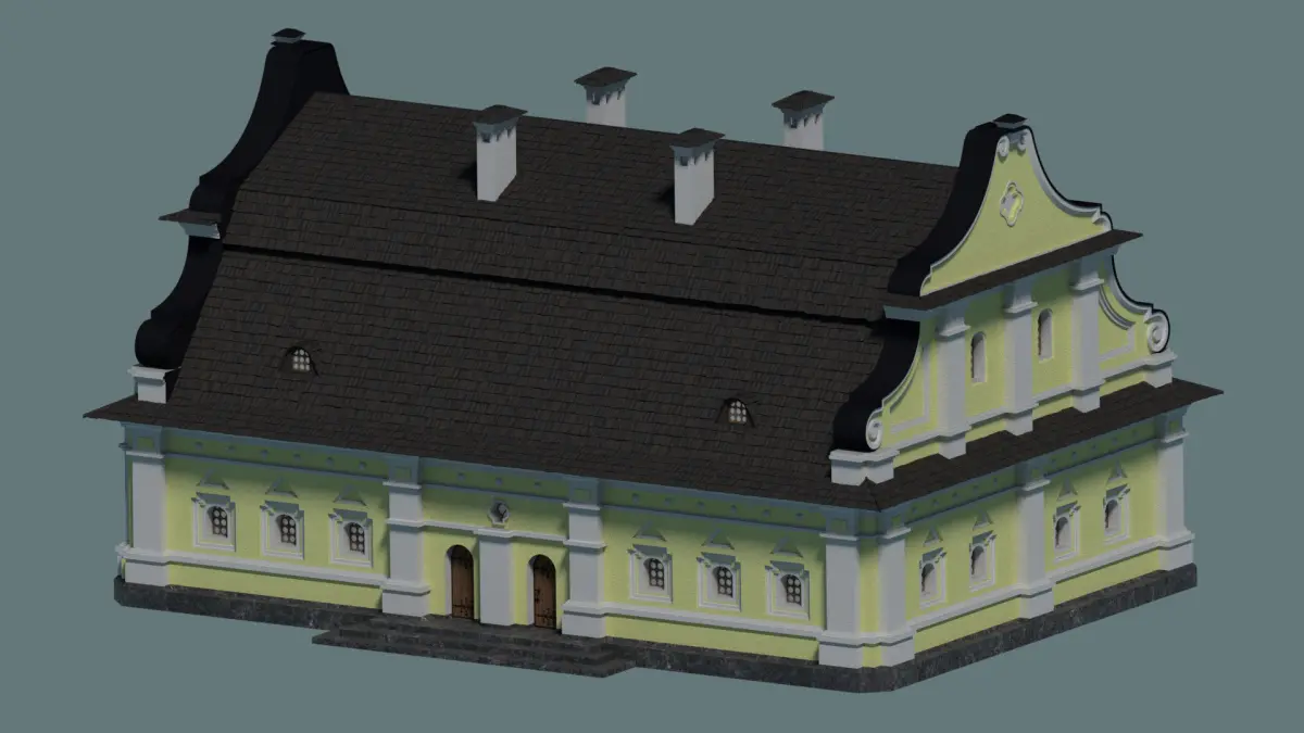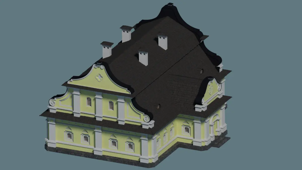 Polygons: 204 267 (129 479 - geometry of a wooden tile roof); Vertices: 277 917 (196 302 - geometry of a wooden tile roof).