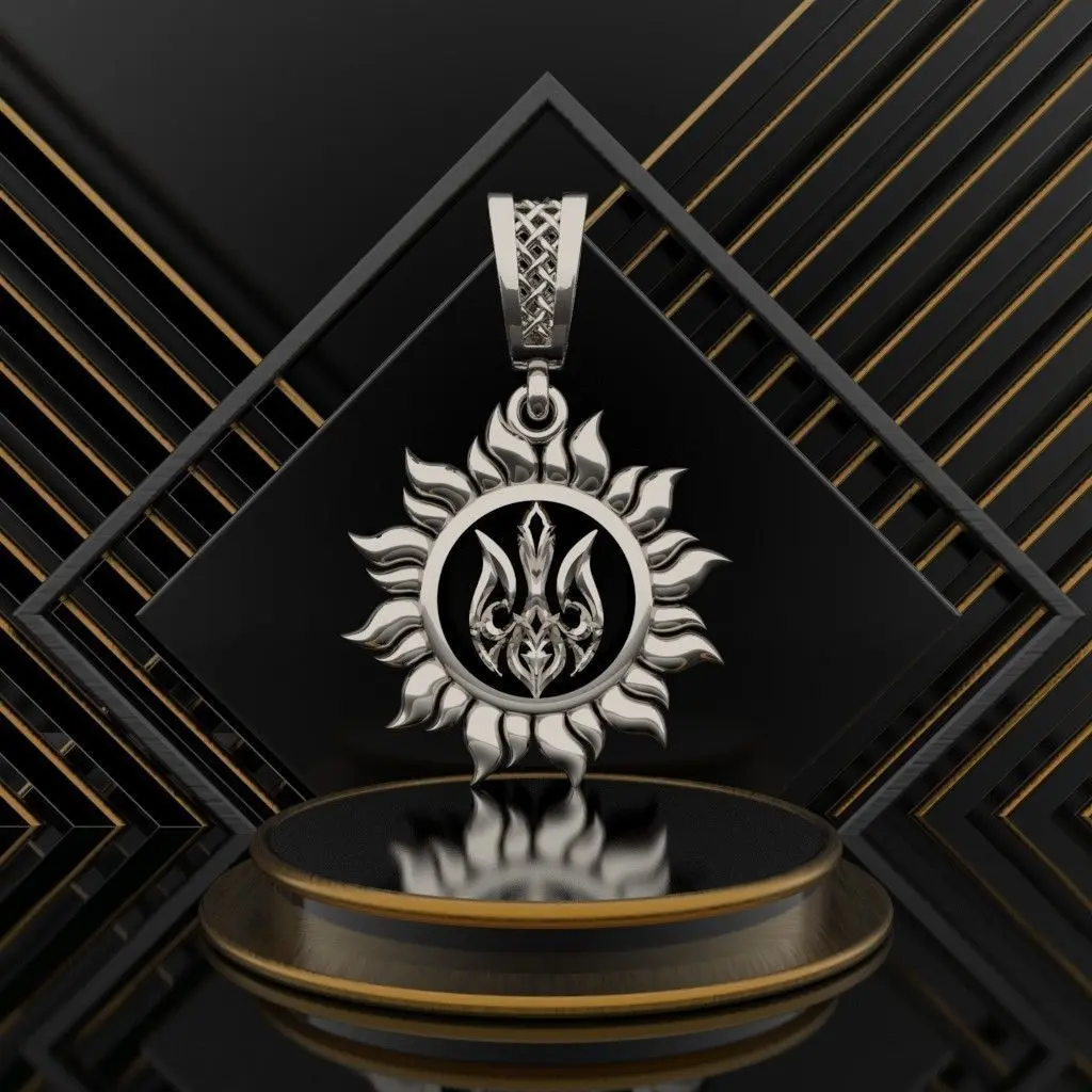 This is a 3D model of the pendant triden from a rhinoceros and Matrix. The size of the pendant is shown in the photo, the model of the pendant is ready for printing, the object is integral, weight: in gold 5.64 gr. silver 4.45 gr.