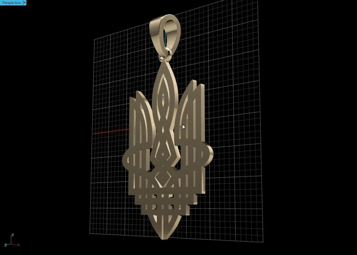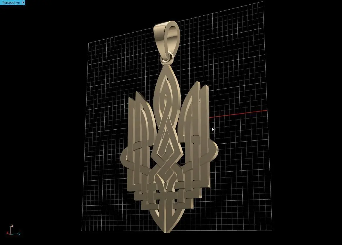 This is a 3D model of the pendant triden from a rhinoceros and Matrix. The size of the pendant is shown in the photo, the model of the pendant is ready for printing, the object is integral, weight: in gold 5.12 gr. silver 4.07 gr.