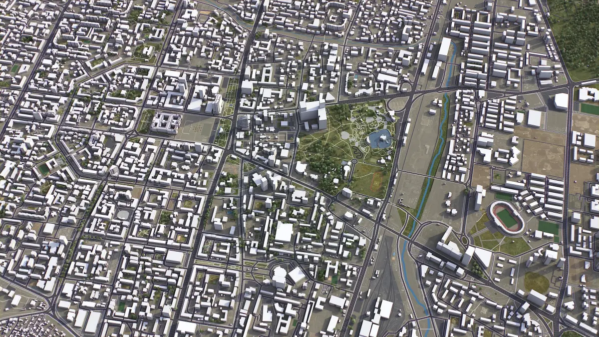- Full city extents up to 100 x 100 km — or crop to an area of interest for better format compability and scene performance