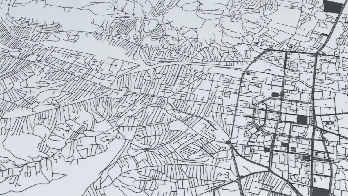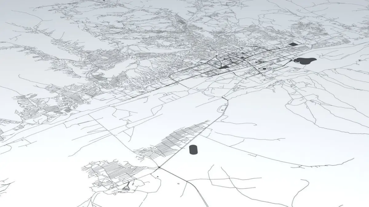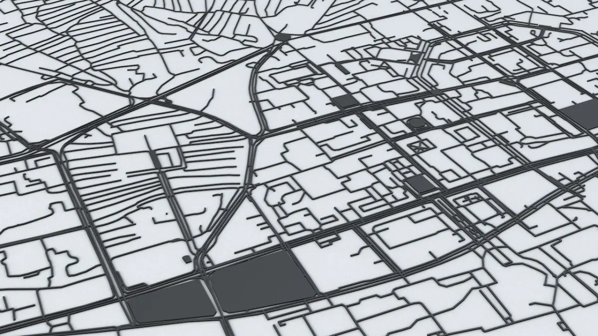 - the model is positioned on a flat surface (road network is on the “floor” - no elevation data included)