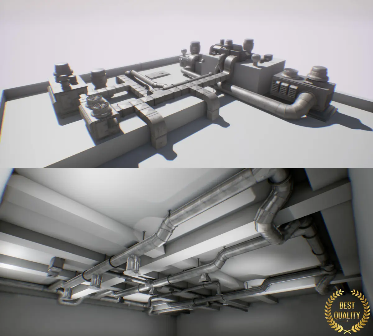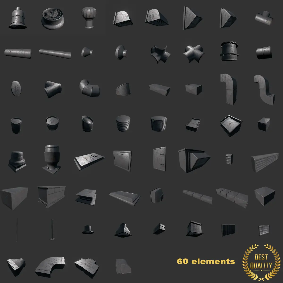 GENERAL-High detailed air duct modular system with photo-realistic presentation. -Modular system have 60 individual objects -Game ready asset for every engine. -3ds Max file contain 60 individual named objects-Preview images rendered in real time with game engine Unreal 4-Objects has real-world scale-You can build any vision of your project with air mashines, roof ends, air ducts and vents included in this pack.
