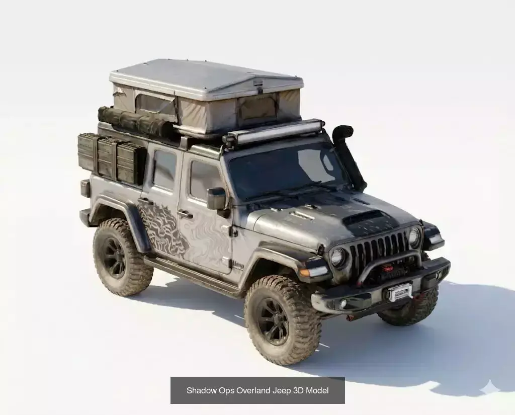 Shadow Ops Overland Jeep: A tactical, matte-black vehicle designed for stealth insertion and military operations.