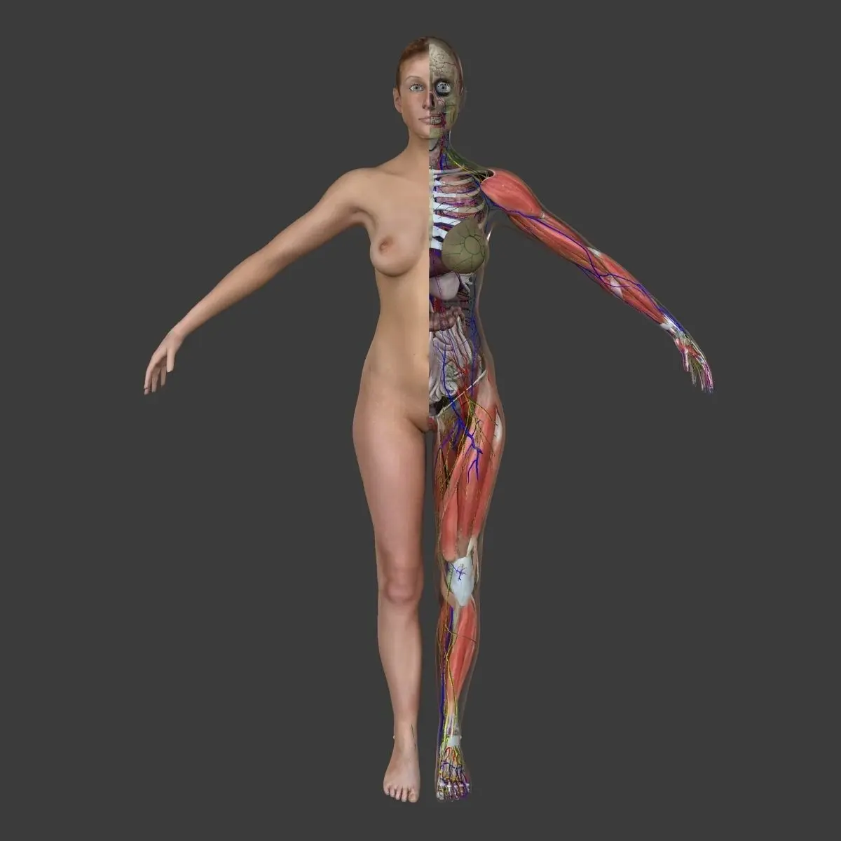 The most complete Full Body Female Anatomy asset available. Over 600 muscles and all major systems. Includes full body skeletal system with connective tissue, muscular system, circulatory system, nervous system, lymphatic system, digestive system, respiratory system, and urogenital system. Includes OBJ for maximum compatibility.