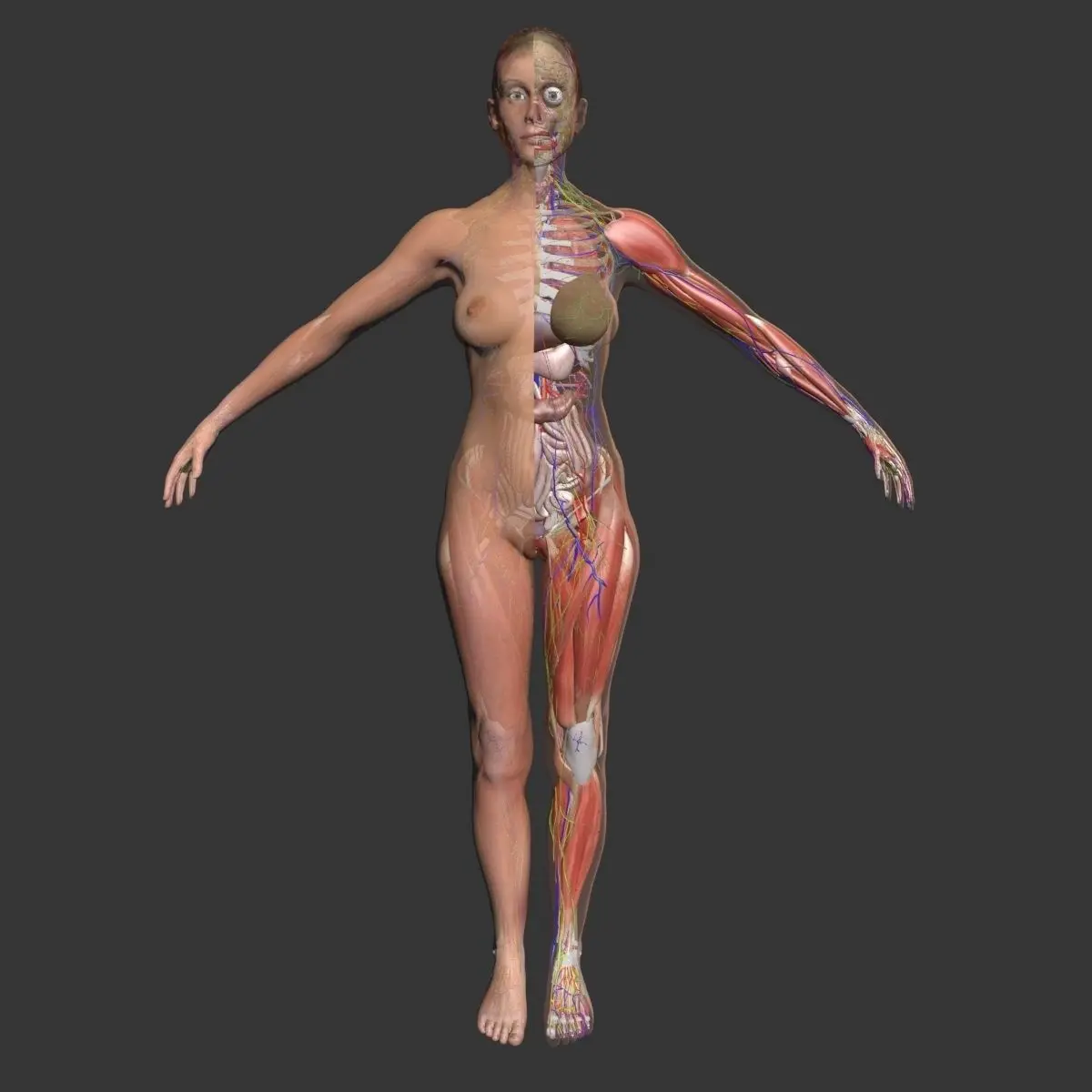 The most complete Full Body Female Anatomy asset available. Taking close to 2 years to create, this medically accurate asset contains over 600 muscles and all major systems. Includes full body skeletal system with connective tissue, muscular system, circulatory system, nervous system, lymphatic system, digestive system, respiratory system, and urogenital system. Includes OBJ for maximum compatibility.