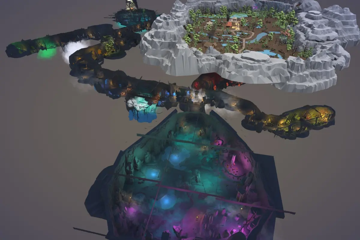 This stylized Low Poly Mining and Cave Pack contains 2597 mining, cave and blacksmithing assets, 52 particle effects and a large demo scene with an outdoor area and a cave system.