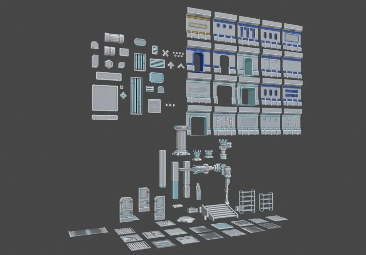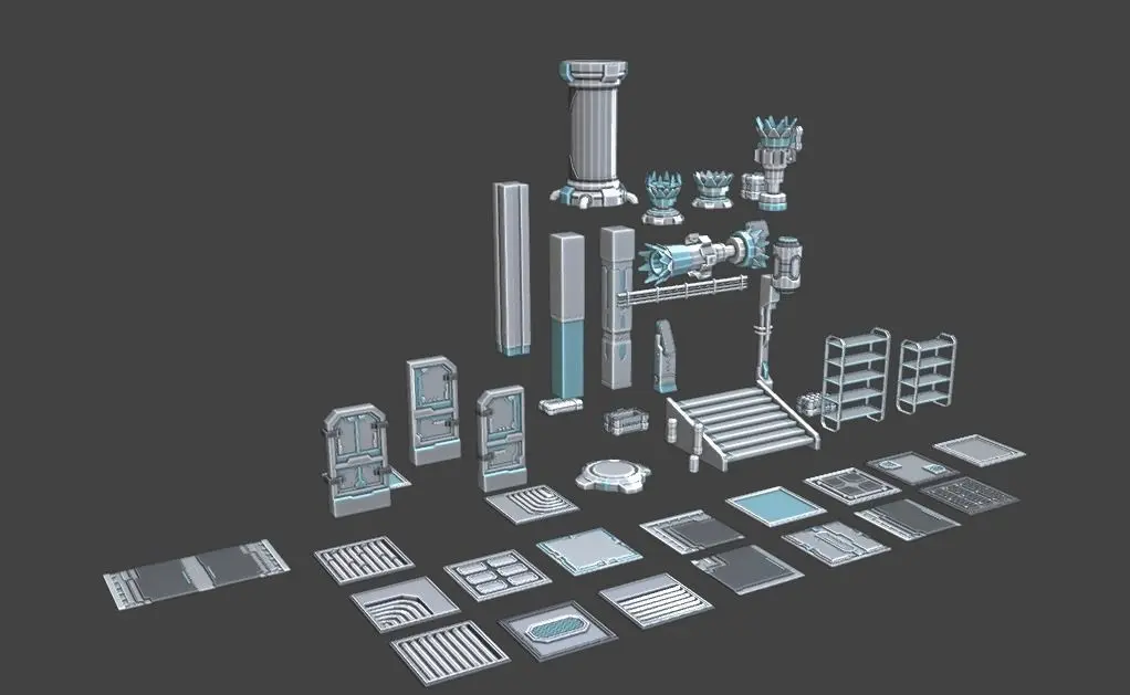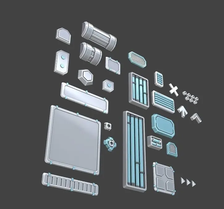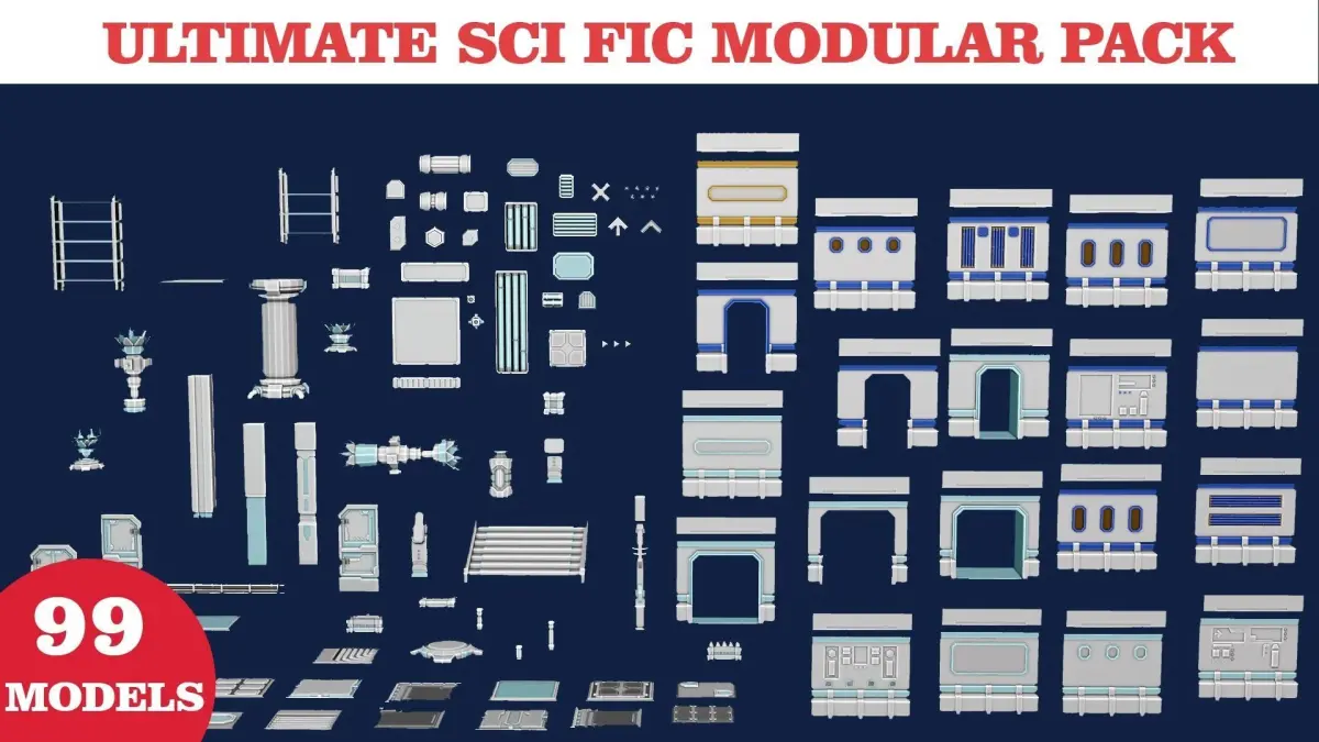 Sci fic modular pack This pack is made in blender High quality polygonal model High quality model to add more details and realism to your rendering projects Detailed enough for close-up renders Model resolutions are optimized for polygon efficiency All colors can be easily modified. No part-name confusion when importing several models into a scene. No cleaning up necessary, just drop your models into the scene and start rendering. Objects grouped for easy selection and logically named No cleaning up is necessary [cameras, lights etc. are not included to the scene] Centered at 0,0,0 Satisfaction Guarranteed Clean geometry, only quads and triangles, no Ngons, and high-res geometry is used only in areas were it is needed.\