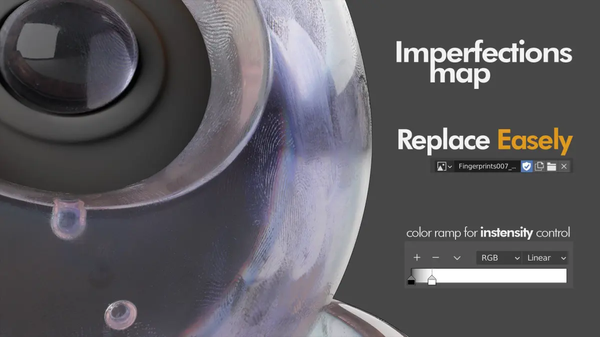 Easy and Full control of Chromatic Aberration colors and Imperfections Map (Only for Blender) , and you can use your prefer custom imperfection/fingerprint maps on all render engines.