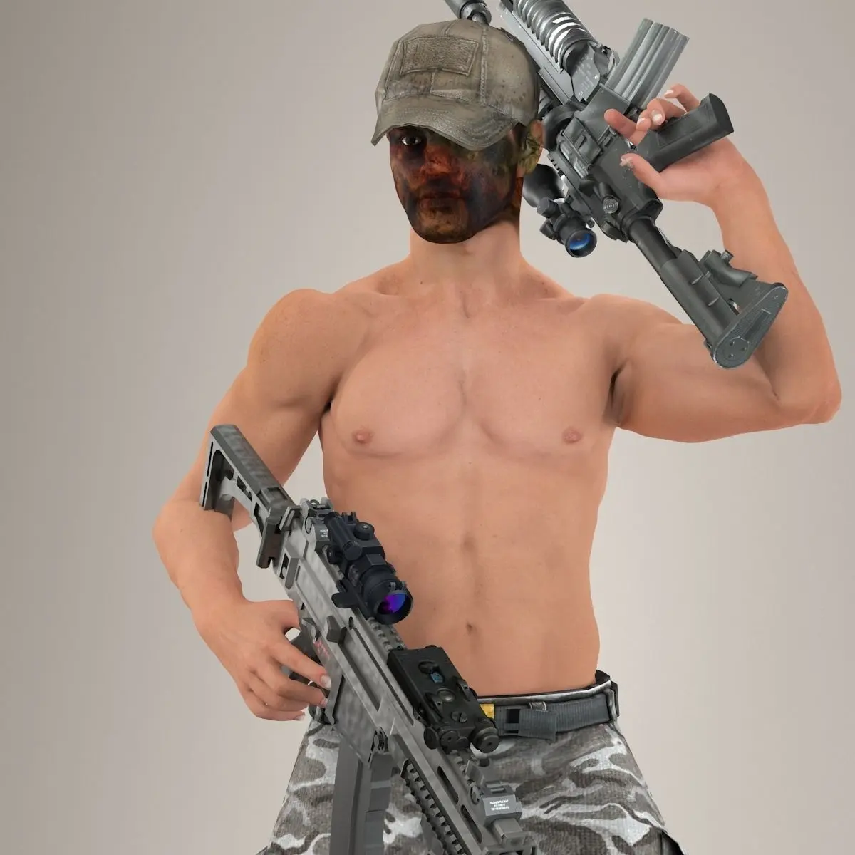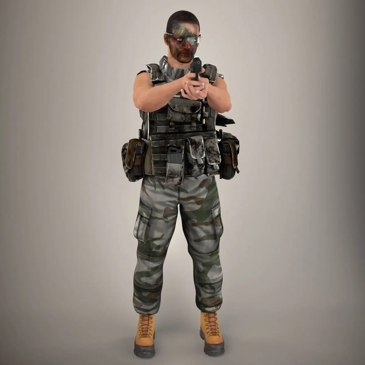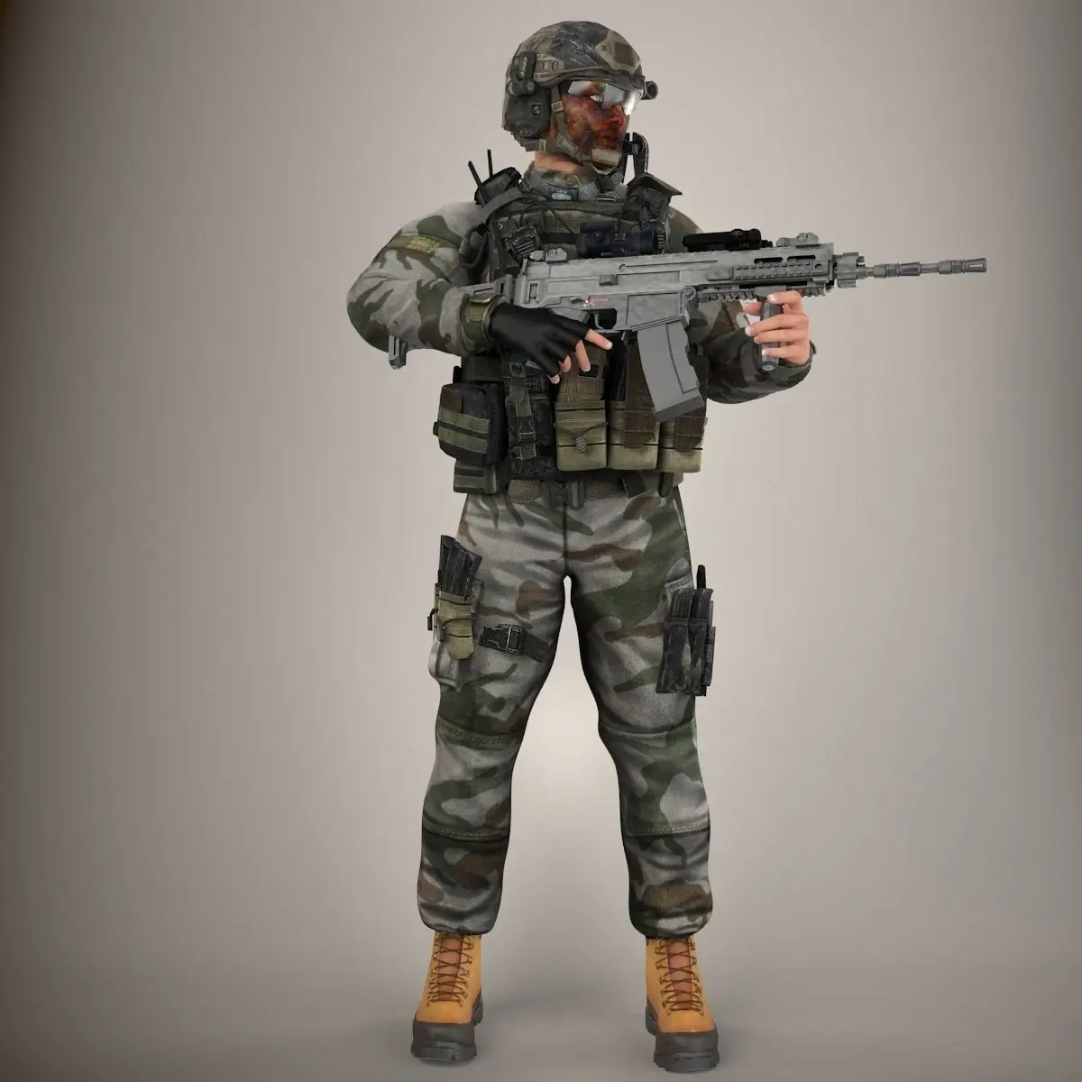 Model is Rigged With biped + Skin. Model contains 2 sets of equipment everything shown on the renderings is included.