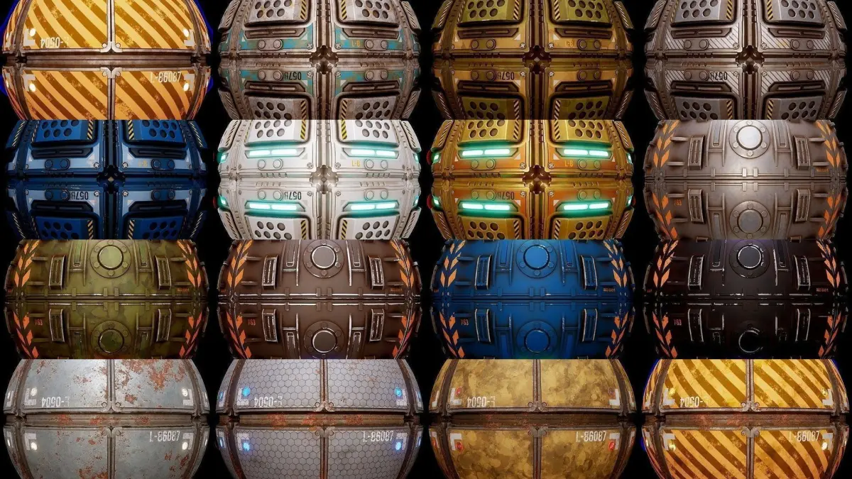 Seamless PBR Textures Collection for Sci-Fi Settings, can be used on Corridor Floors, Hangars, Industrial Rooms etc. or combine them with other sets to give your level the desired Design.