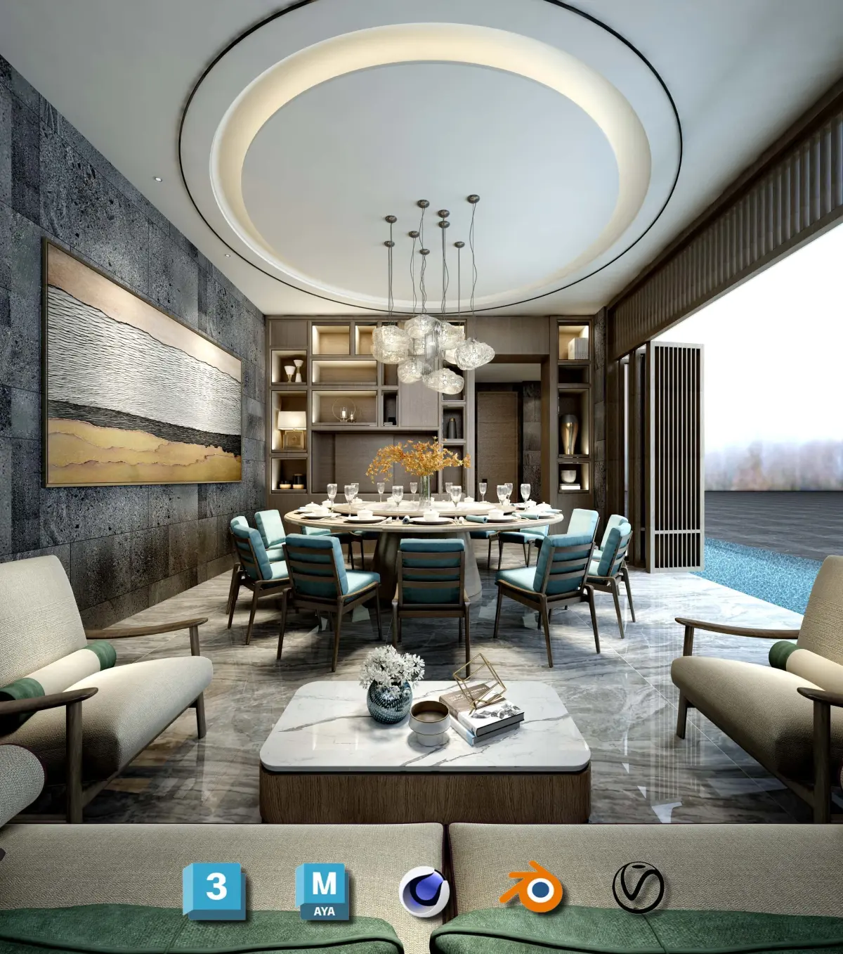 Ultimate VIP Restaurant Lounge - Complete 3D Interior Set (High-End Furniture, Decor & Lighting)