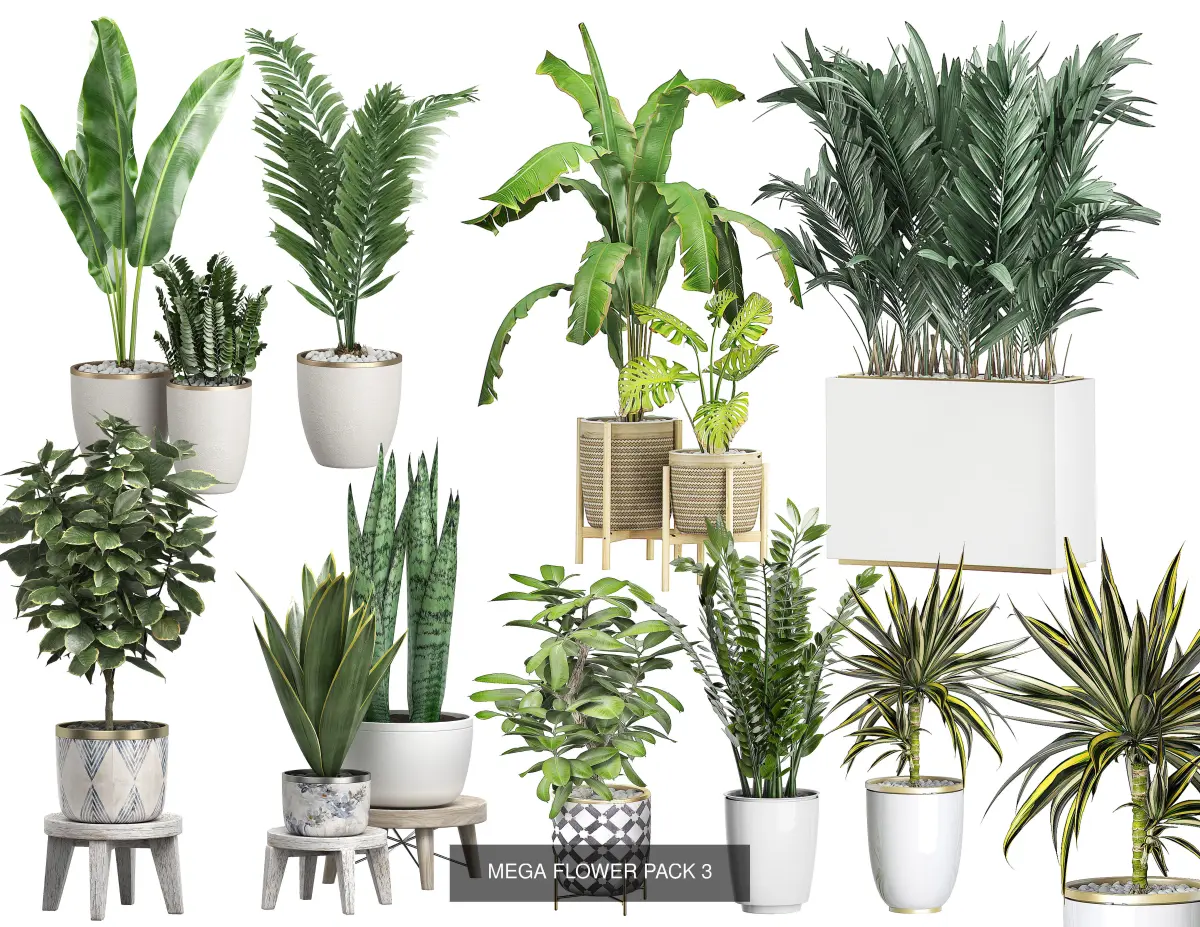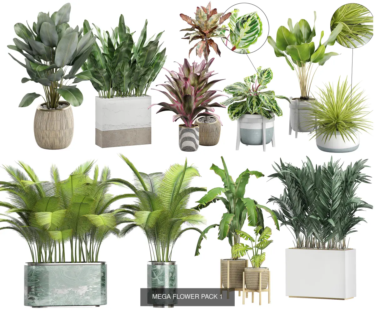 The maximum collection of flowers in pots for interior 3D visualization. Cost separately $ 140.