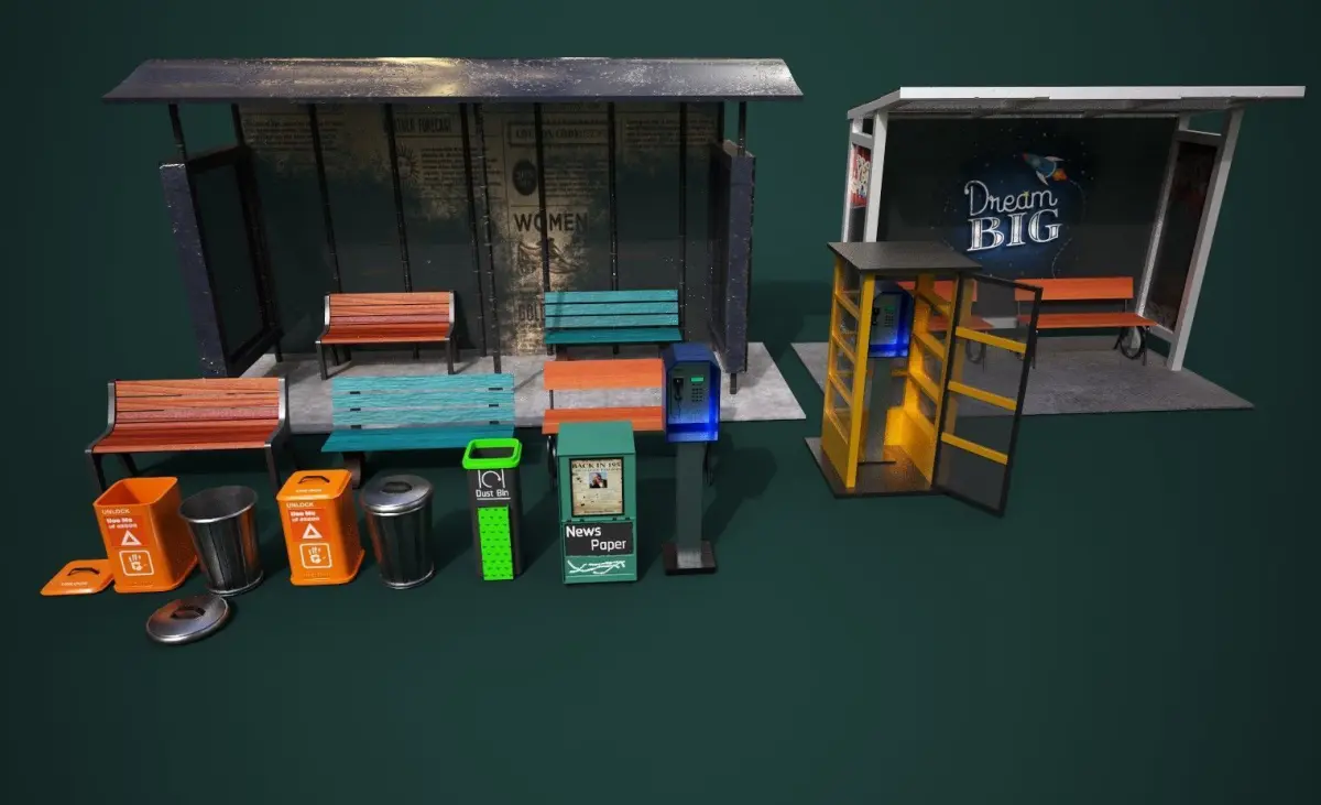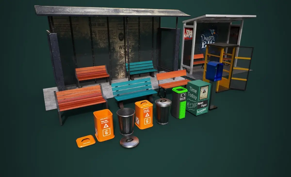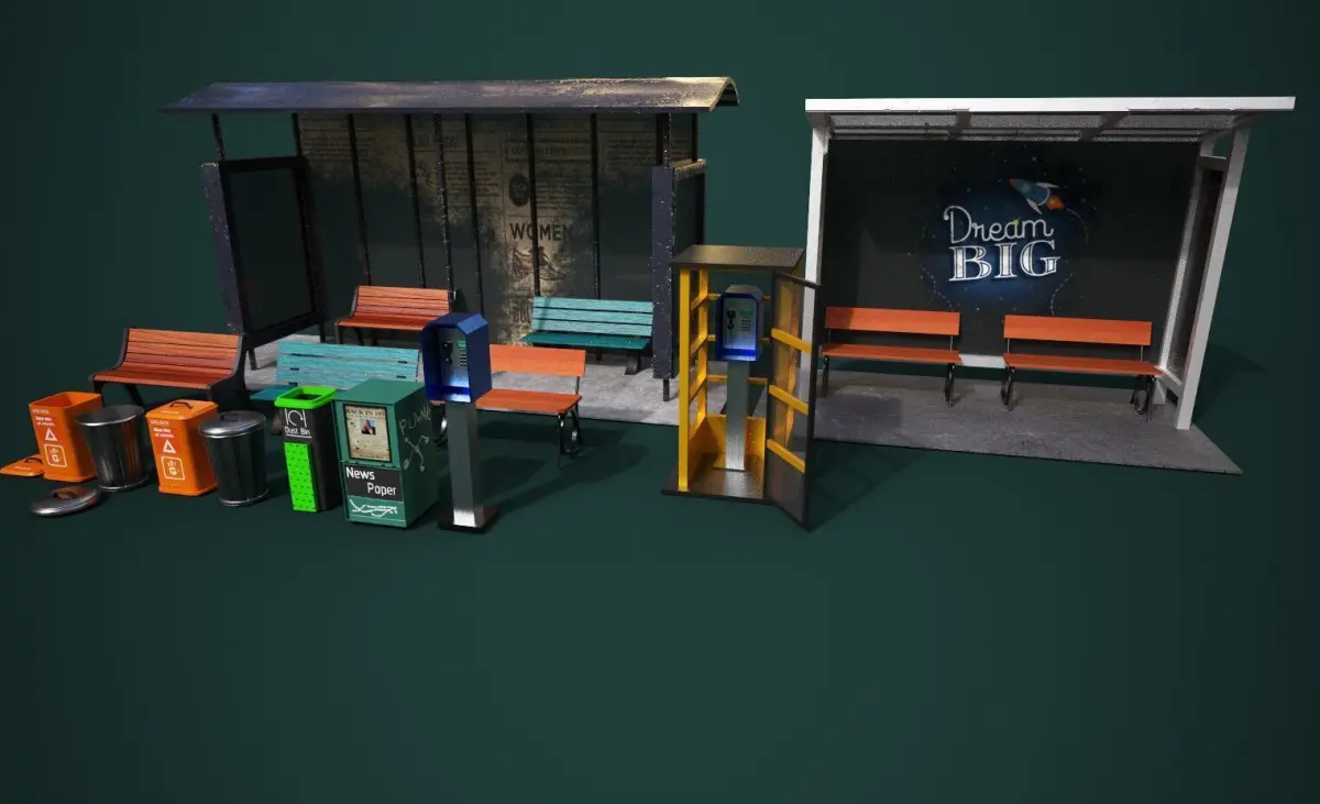 High-Quality Road Prop Pack designed for professional game development and architectural visualization. This pack includes PBR-textured road assets with ultra-realistic materials, perfect for modern urban environments.