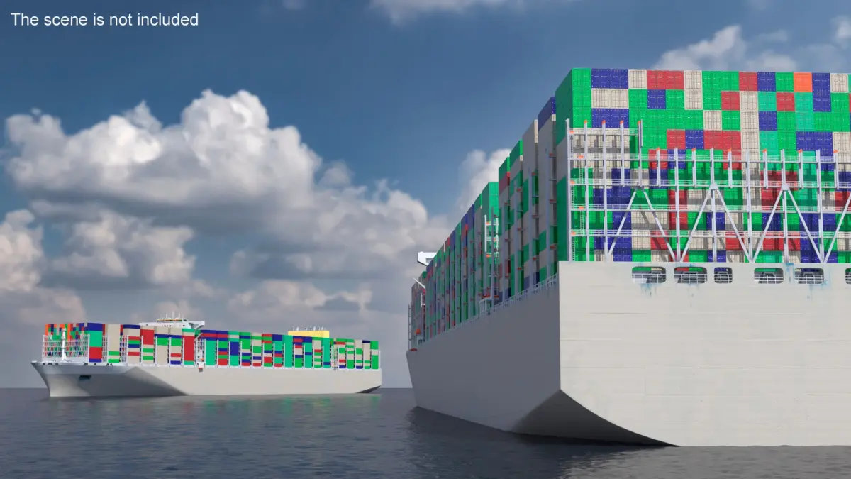 Ultra Large Container Cargo Ship is a three-dimensional model of container vessel designed for the mass transportation of goods across oceans.