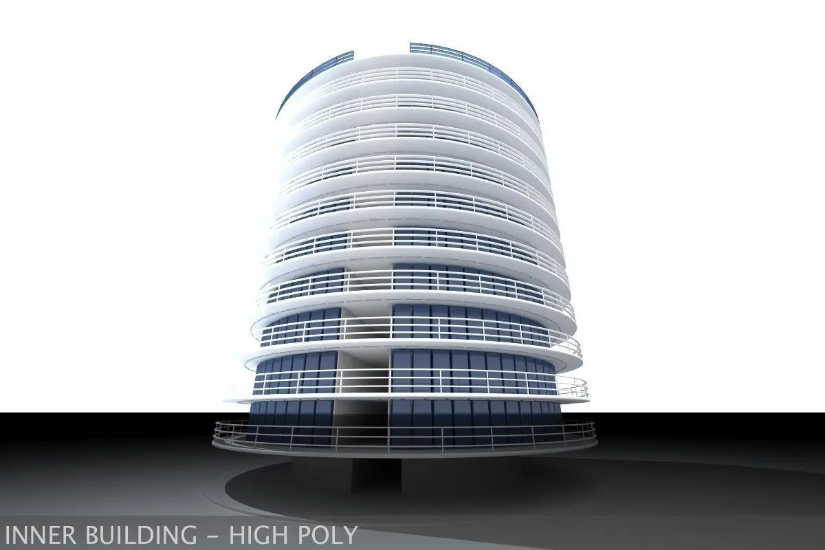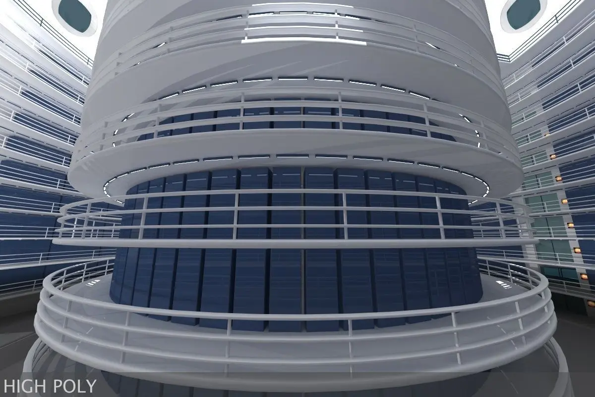 - inner building - 11 floors with elevator and emergency exit staircase / each level has 4 separate rooms- outer building - 11 floors with elevator and emergency exit staircase and also a main exit/entrance- connecting bridge on the top floor between the inner and outer building- the main building element surrounds the whole interior - cupola design with large windows- the main building can be part of a mighty complex and can be rendered from outside- there are relax benches and tables on the ground level- Cinema 4D and Vray materials- preview images rendered with VrayforC4D- 15 camera setups- light setups - ONLY IN CINEMA 4D- high resolution 2048x2048 / 2048x4096 / 3840x2160 textures- 9 extra high-res textures for the racks- objects are named properly and organized in the .c4d / .fbx / .dae files- all doors in the complex can be animated / axis points are set to work them easy- depending on your viewport renderer the first load of the scene might take 1-2 minutes - please be patient- depending on the file format and your software some materials need to be reapplied- opens best in Cinema 4D