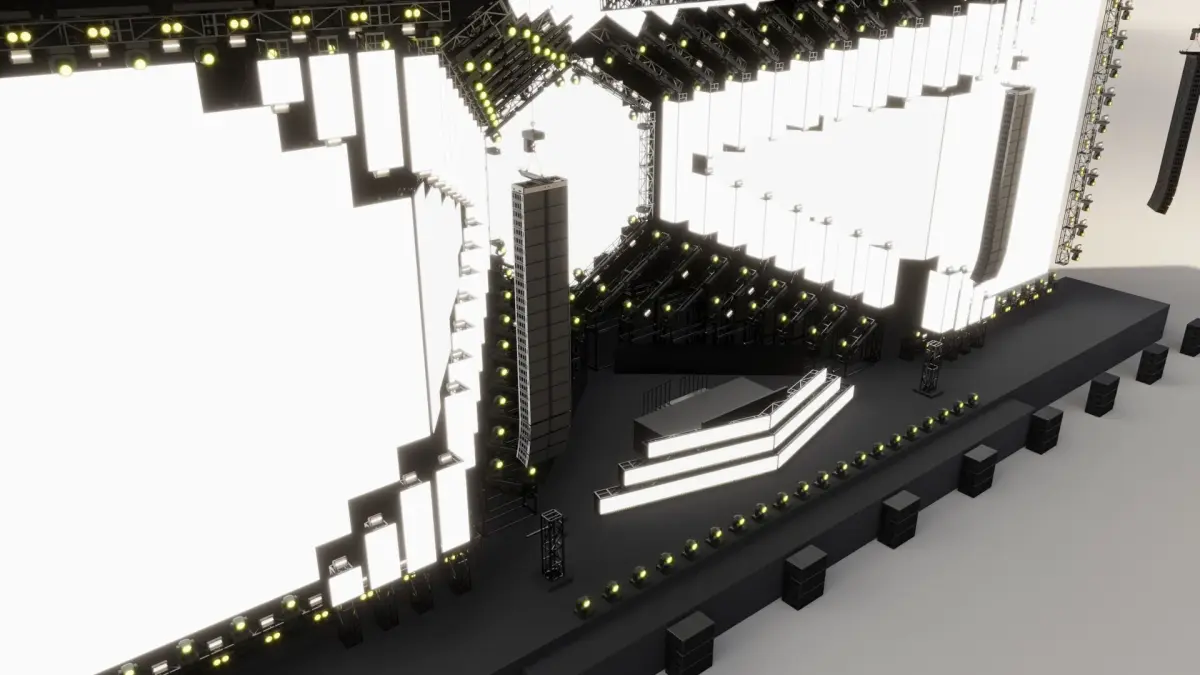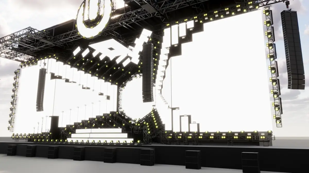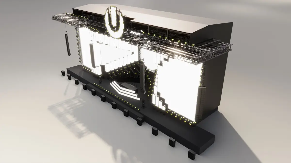This 3D model is a detailed recreation of the iconic Ultra Music Festival 2018 stage. It's ideal for festival stage design and event visualization projects. The model includes key elements such as the DJ booth, lighting structures, and stage background. Suitable for use in concert simulations, event planning, visual presentations, and more. The loudspeakers models depicted are the property of L-Acoustics. They are used without authorization from the company and their re-use may constitute a violation of applicable intellectual property laws and/or unfair competition.