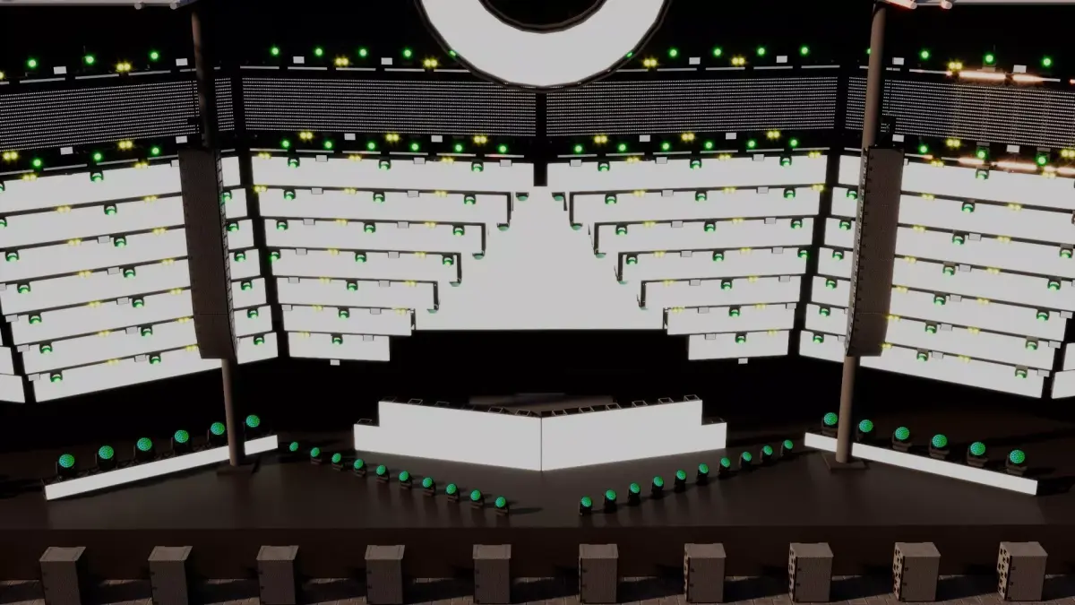 The UV map is not included, but the model allows for quick material and texture modifications. With the drip tool, lighting, colors, and materials can be quickly altered, making it easy to generate different visual concepts. This model is an excellent foundation for high-quality music festival visuals and virtual event productions.