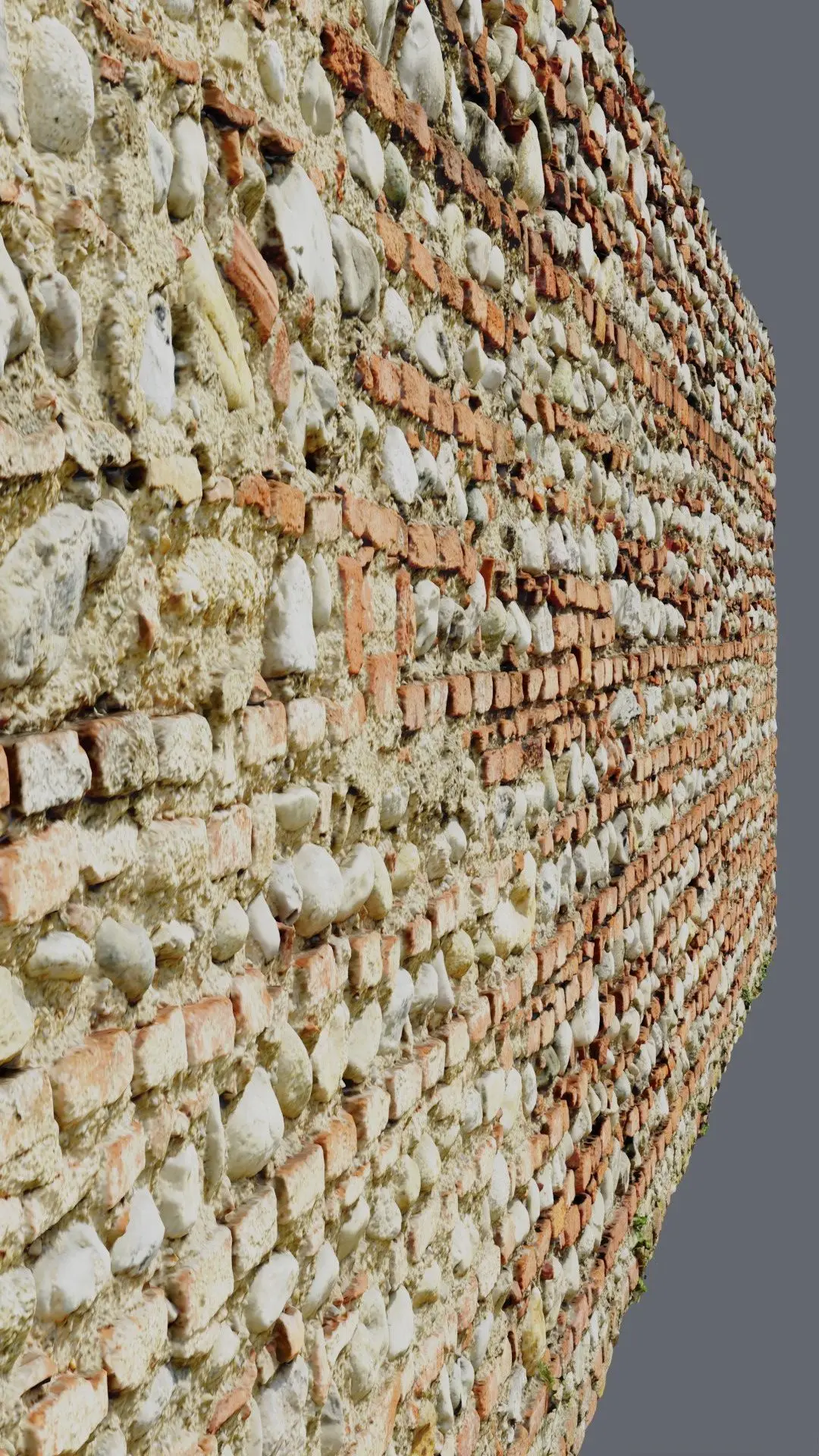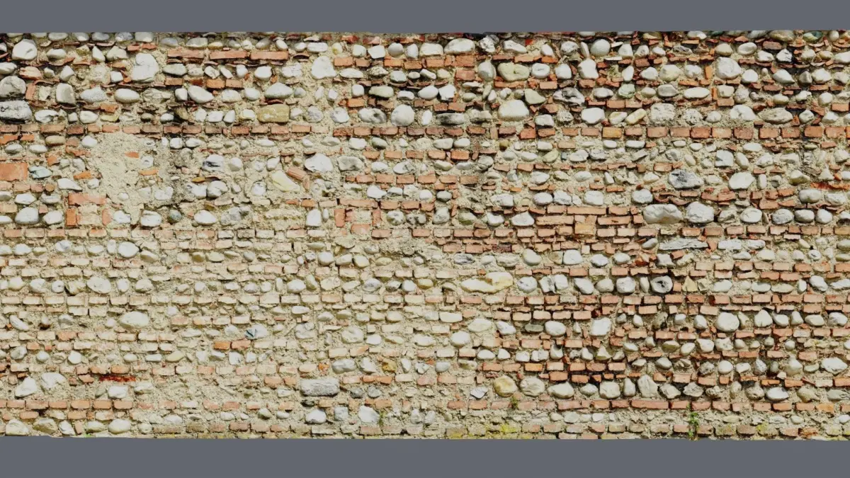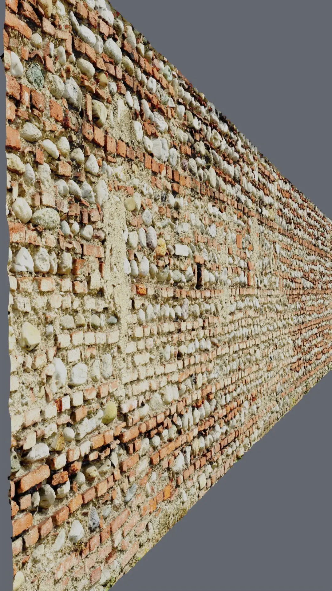 This is a photorealistic hy poly 3D model of brick old wall long 15 meters.