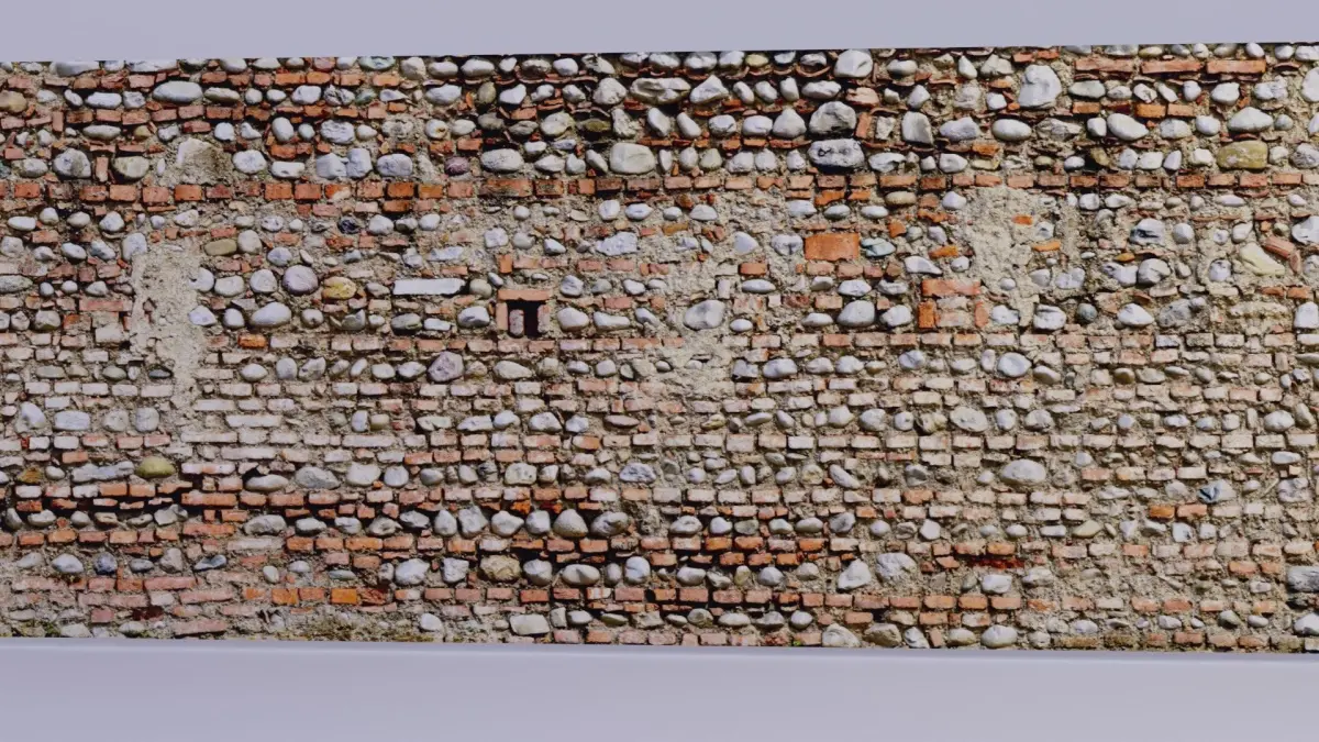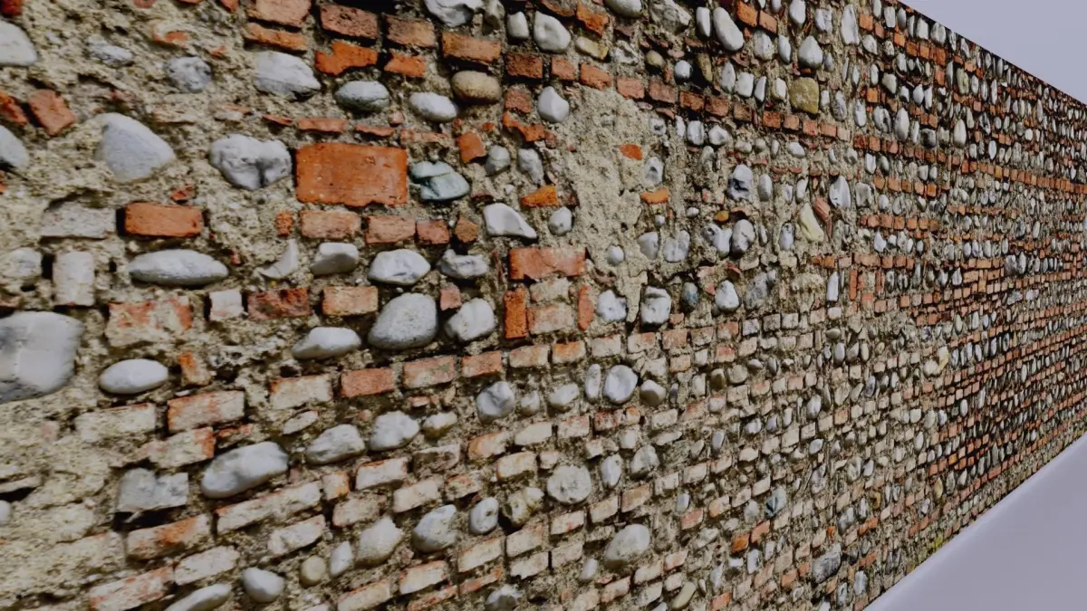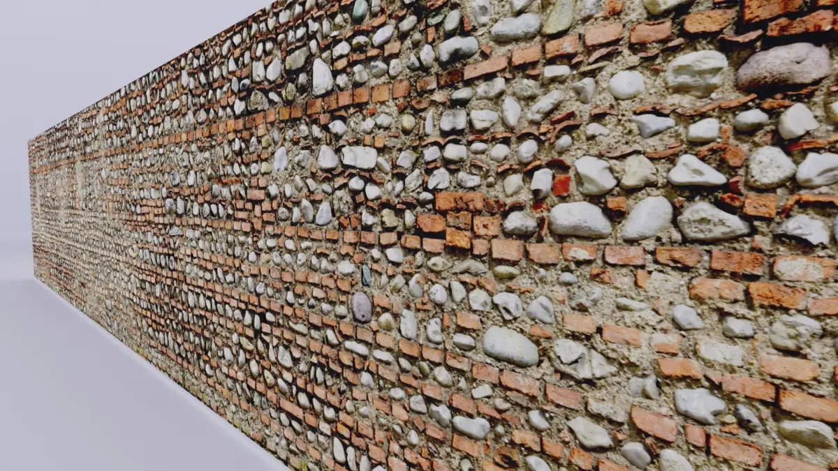 This is a photorealistic low poly 3D model of brick old wall long 15 meters.