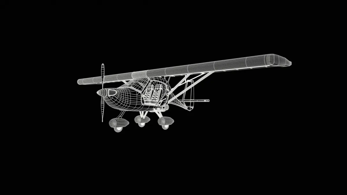 An ultralight aircraft tailored for civilian use in the historical timeline, boasting a unique design that sets it apart. This aircraft showcases a vibrant red color scheme, with a single propeller at the front and a set of small, stubby wings. The body is compact and lightweight, perfect for leisurely flights over the countryside. The cockpit is open-air, allowing the pilot to feel the wind in their face as they soar through the skies.