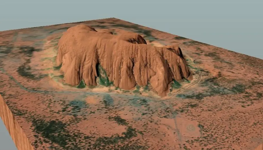 Real scale 3D model of the Uluru Ayers RockIt's polygon mesh was created from the accurate digital elevation data (DED)Land model dimensions 3.5x5kmThe model used one photo with dimensions 4608x3584 for texture