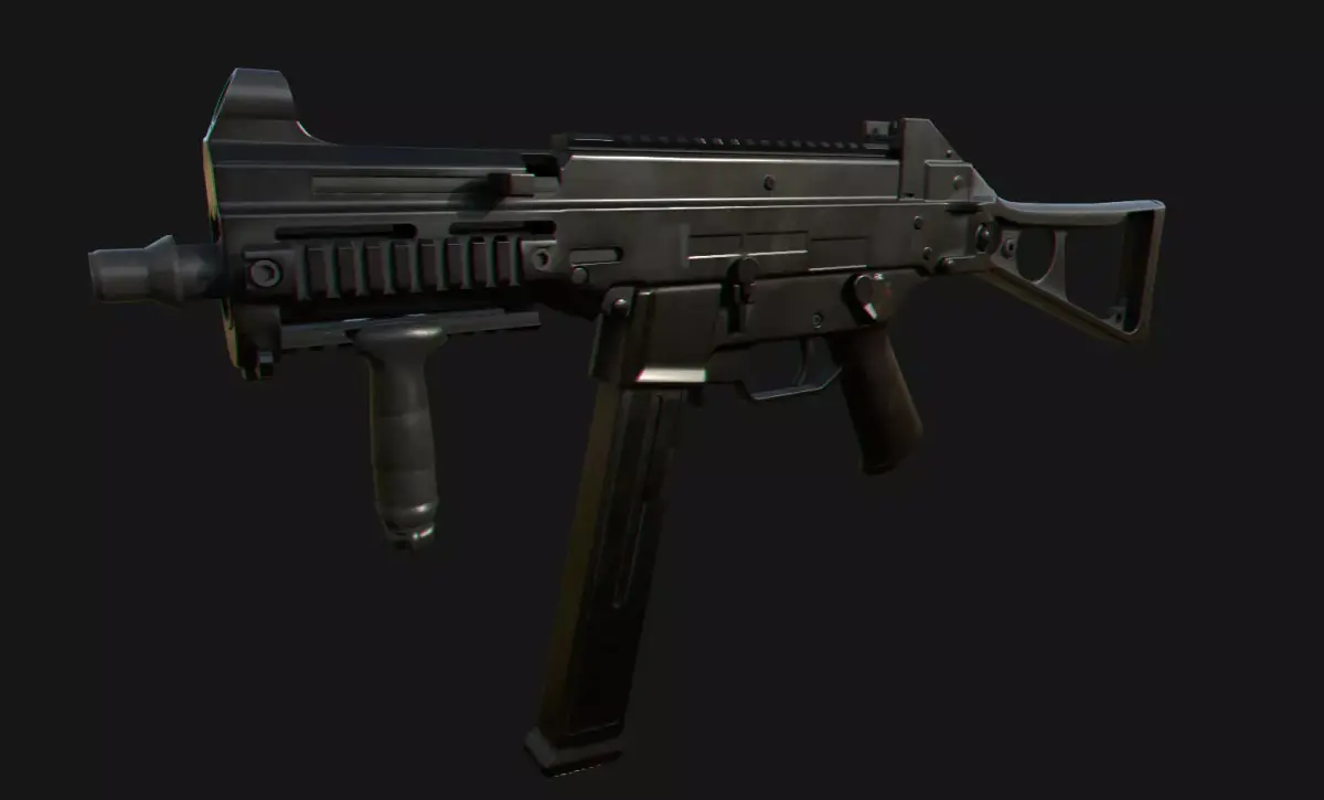 High-performance, low-poly 3D model of the Heckler & Koch UMP45. Designed as a lighter, more cost-effective successor to the MP5, the UMP (Universal Machine Pistol) is chambered in the hard-hitting .45 ACP round. It is a staple for tactical units worldwide, prized for its modularity, integrated Picatinny rails, and superior stopping power in close-quarters combat.