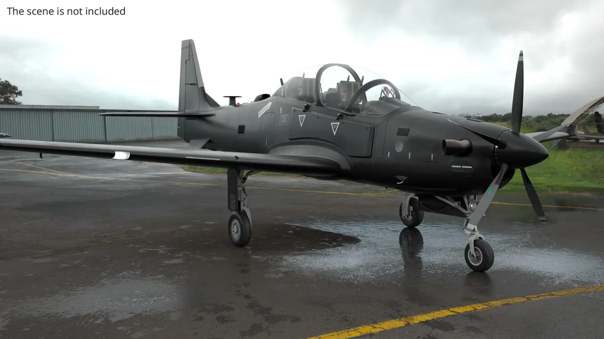 Unarmed Patrolling Turboprop Aircraft Rigged for Maya is a 3d model of a light attack and advanced training aircraft, commonly known for its versatility and robustness in military operations.