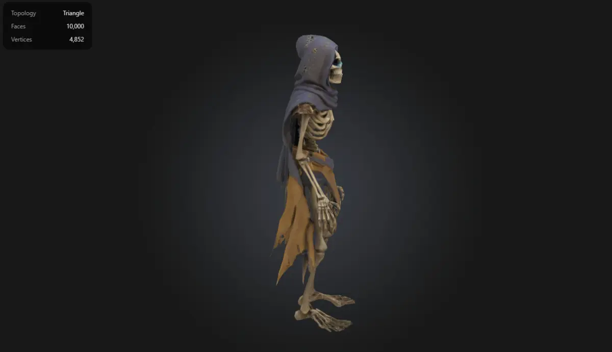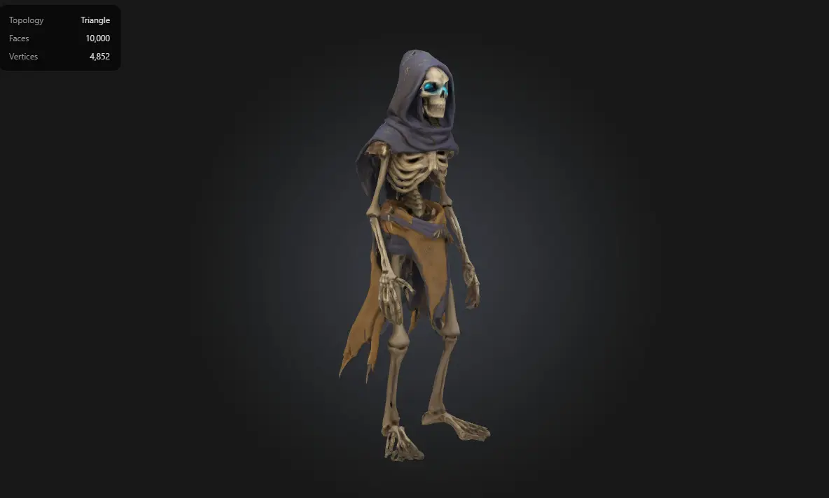 This stylized undead skeleton character is designed for fantasy and horror-themed games. Featuring glowing blue eyes, torn medieval-style clothing, and a neutral T-pose, this asset is optimized for easy rigging and animation. Ideal for RPGs, dungeon crawlers, or dark magical realms.