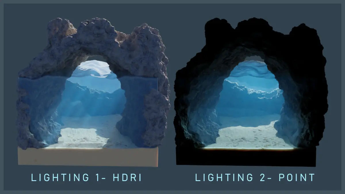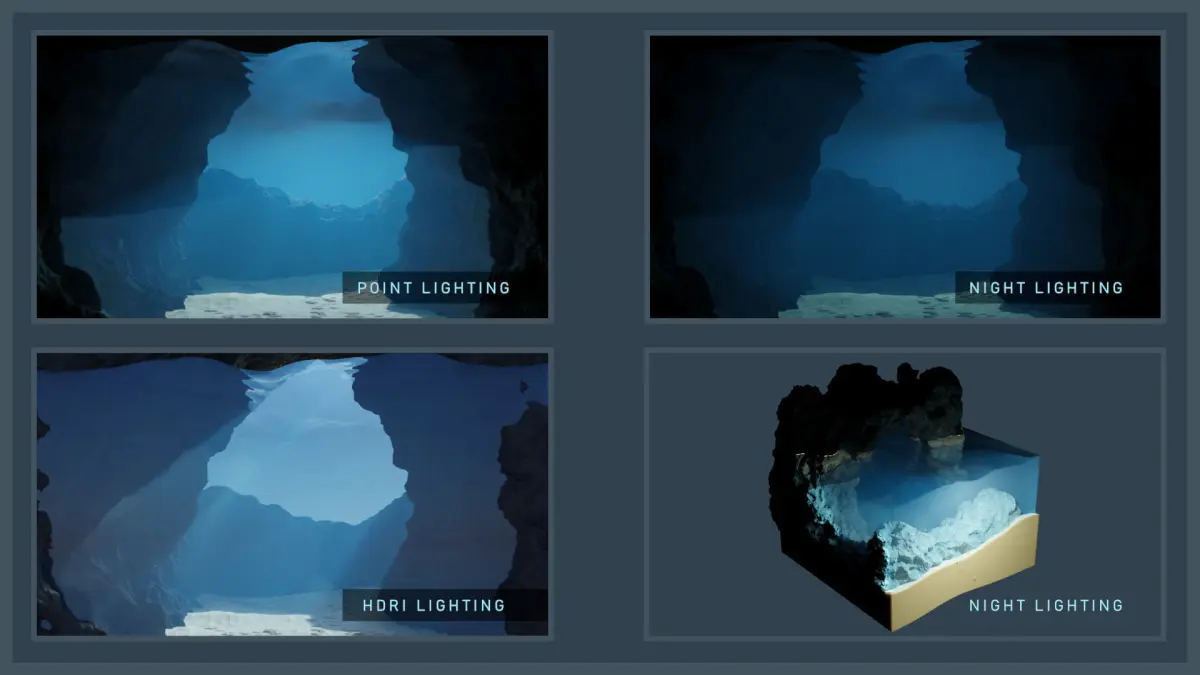 Animated ocean cave environment for underwater scenes. Highly customizable, with multiple lighting and procedural material options included.