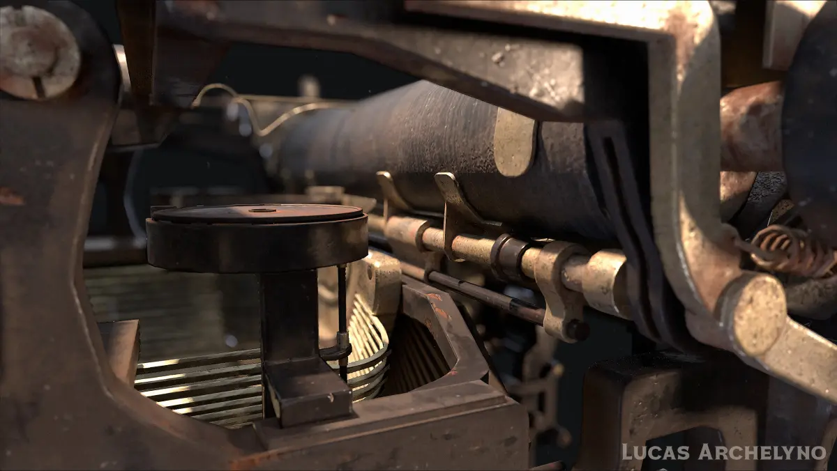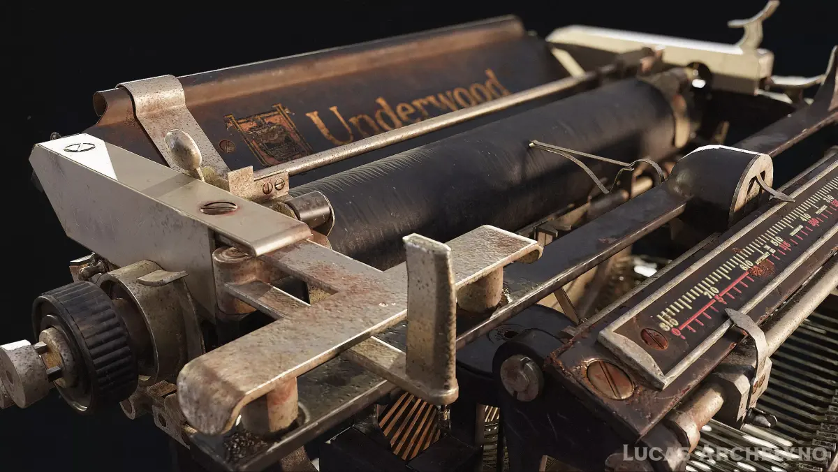 A detailed yet optimized low-poly 3D model of a vintage Underwood typewriter, designed for use in real-time applications such as video games, VR/AR, and interactive environments.