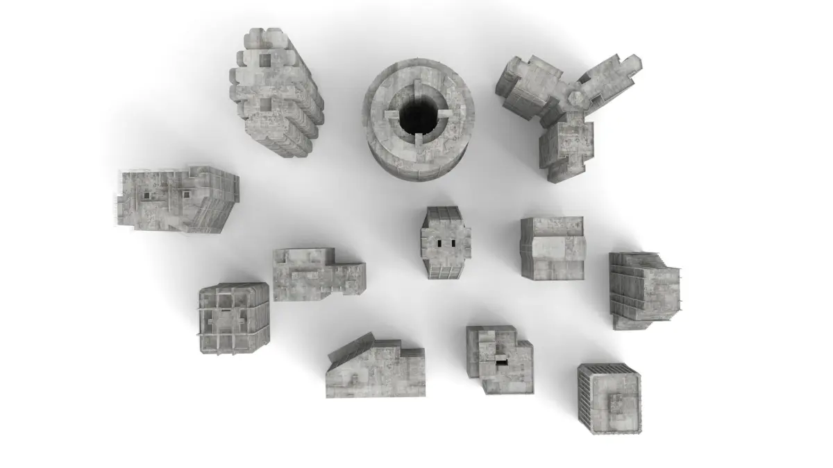 - A set of materials and textures are shared by all buildings. Total of 8 materials and 15 textures.