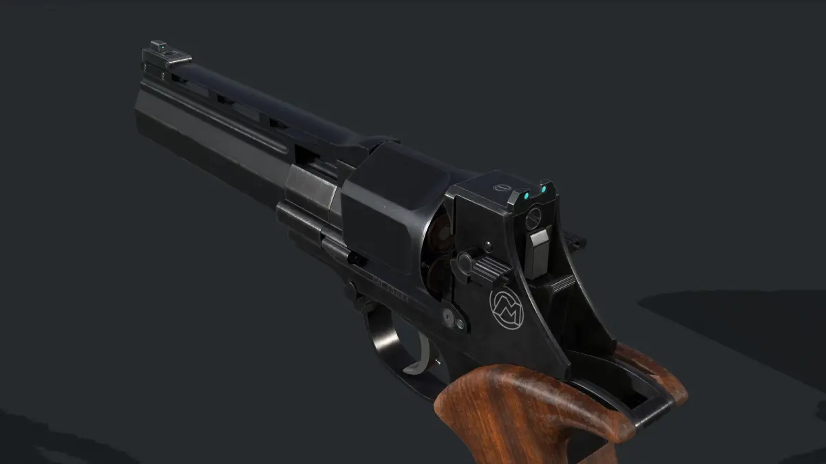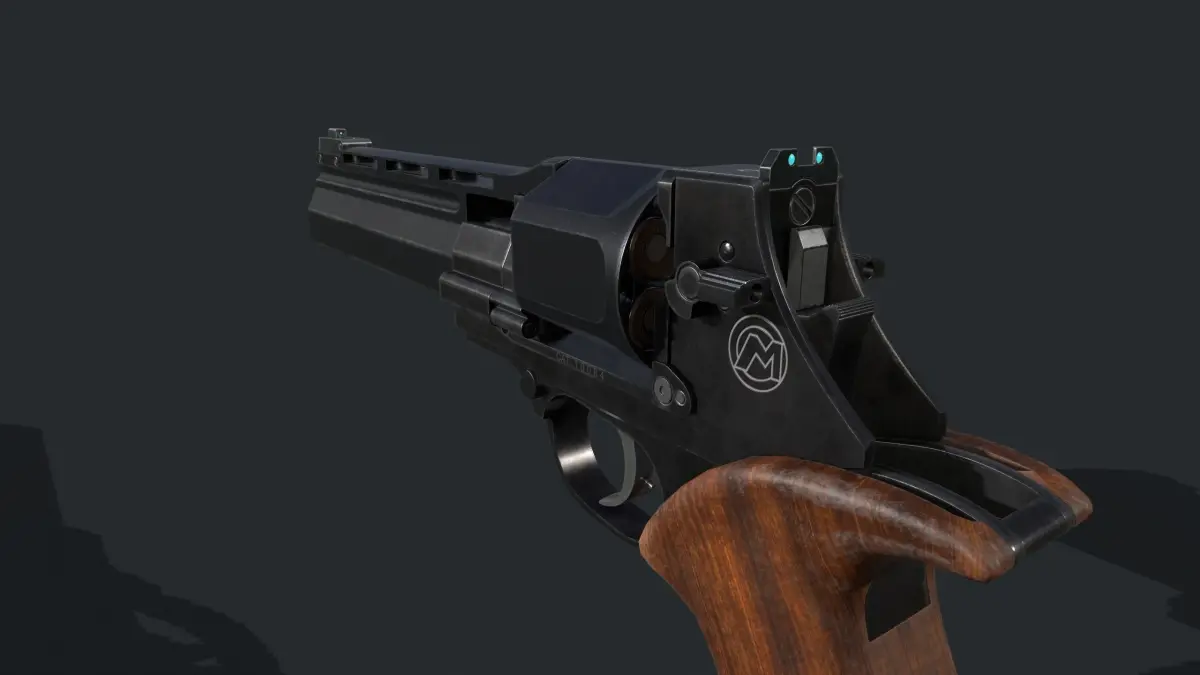 Italian revlover with lower placement of a barrel. .357 magnum caliber. Model is split into mechanical active parts and Heirarchies built for better animations.11k triangles, overlapping UVs. Texture res 4k by 4k
